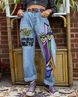 Fraen abstrakt Päerdsgesiicht Stroosse-Breitbeen-Moud Jeans Dammen laang Moppehosen Wanter nei Produkter 2119