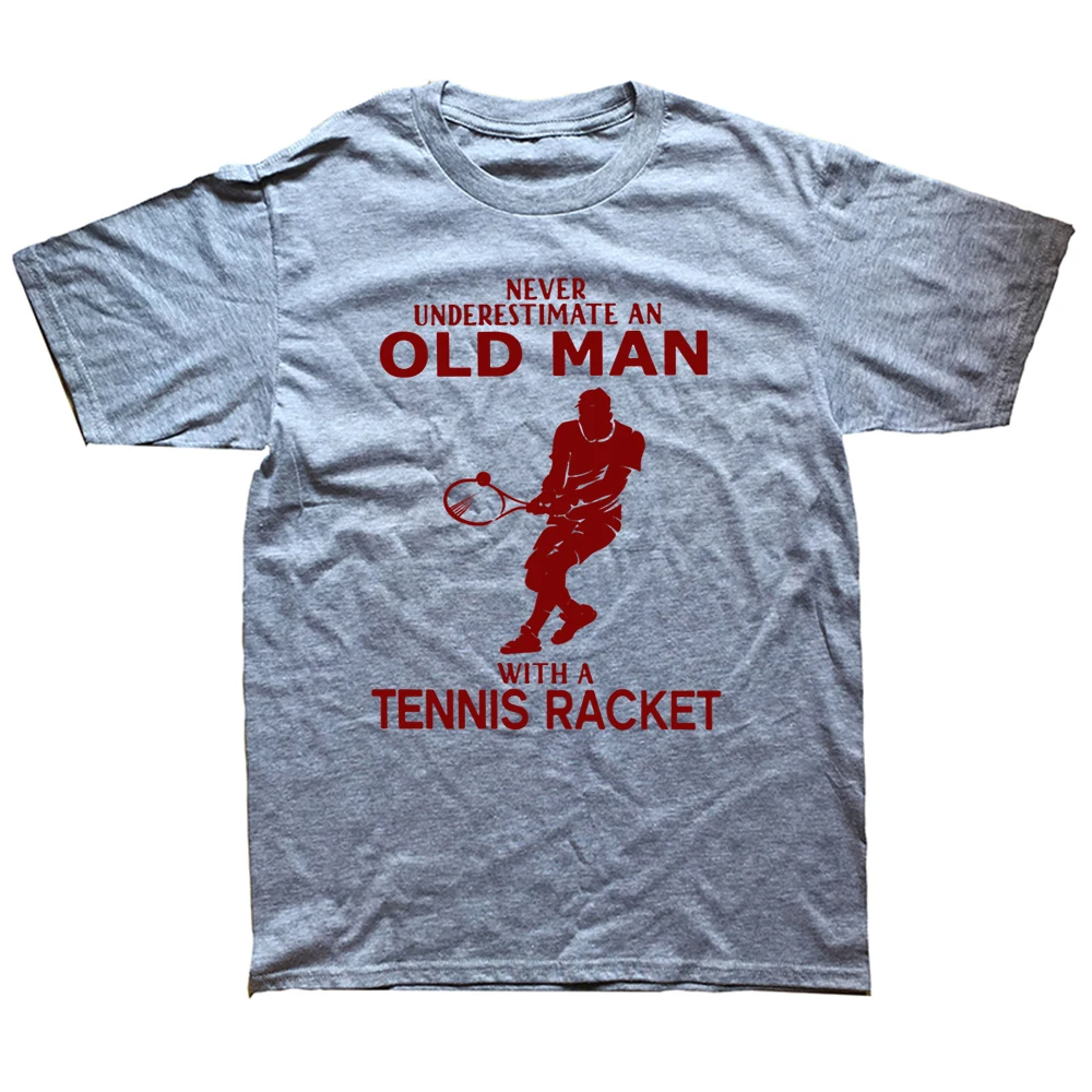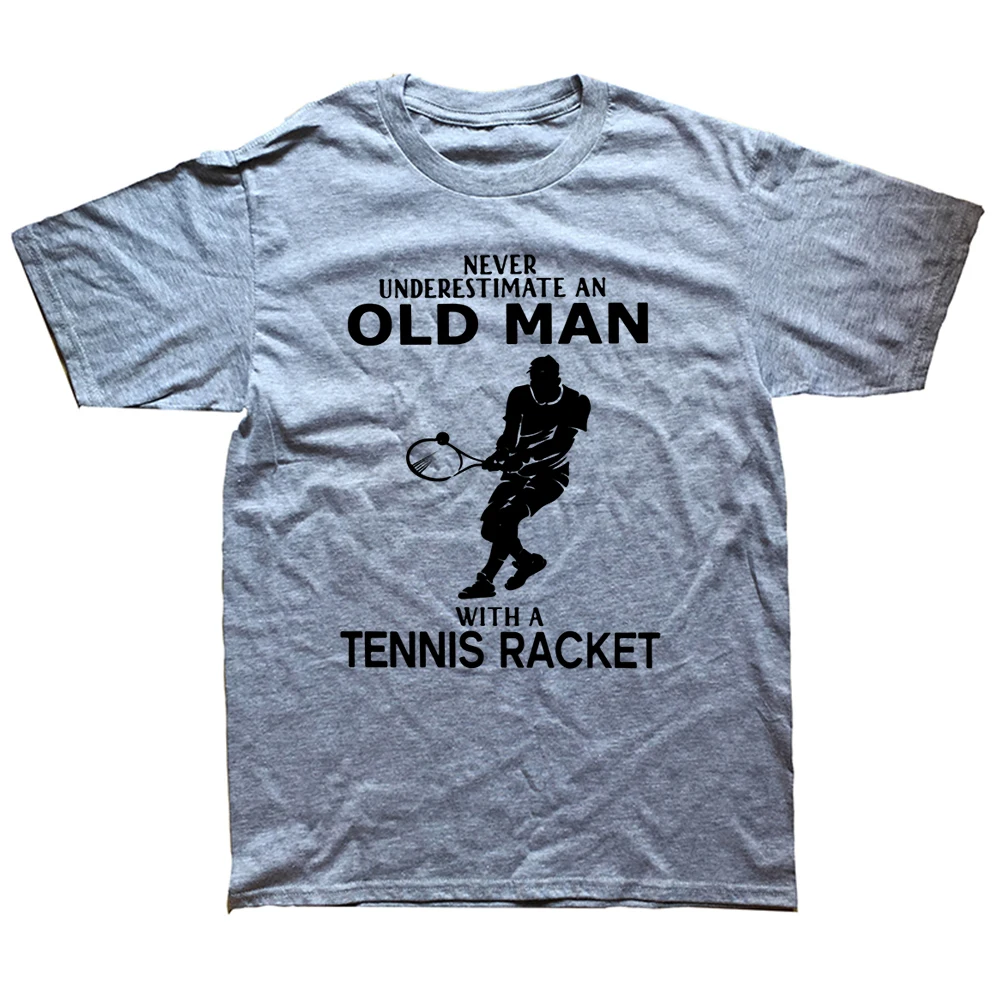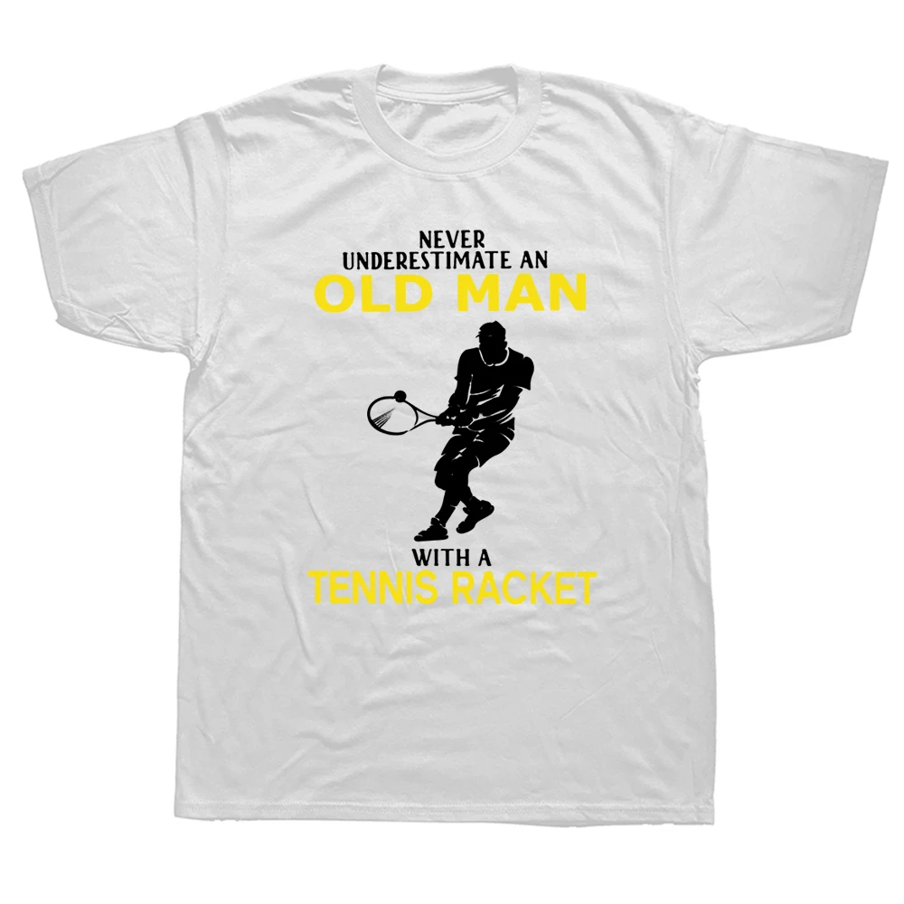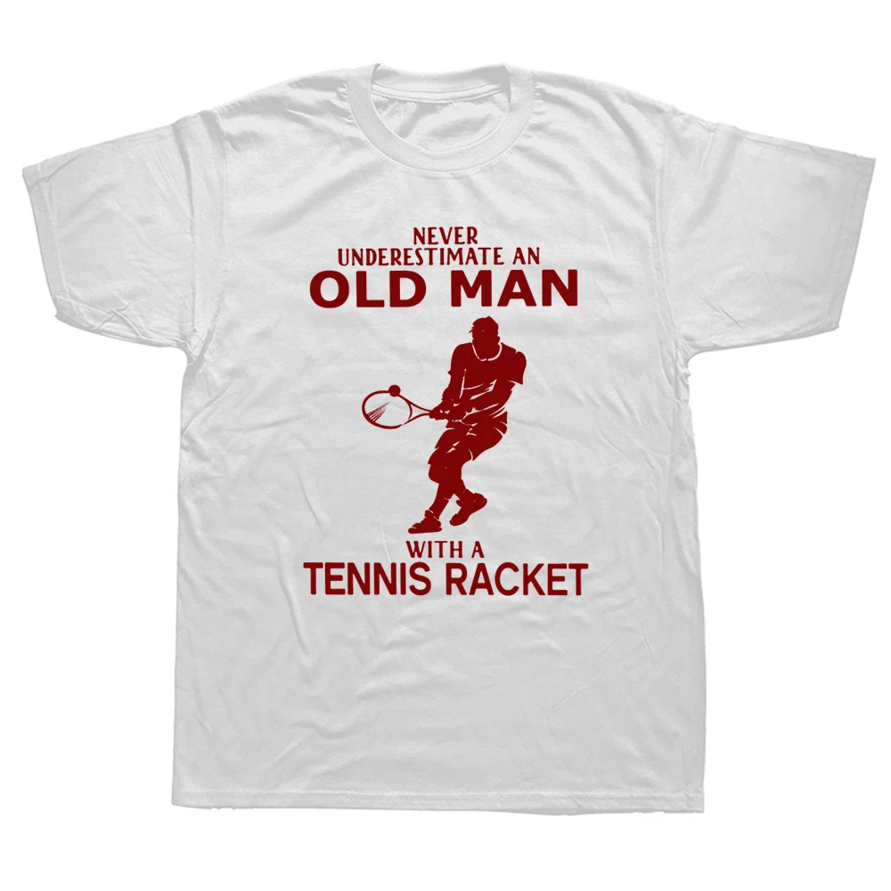 Funny Never Underestimate Old Man With Tennis Racket T Shirts Cotton Streetwear Short Sleeve Birthday Gifts Summer Style