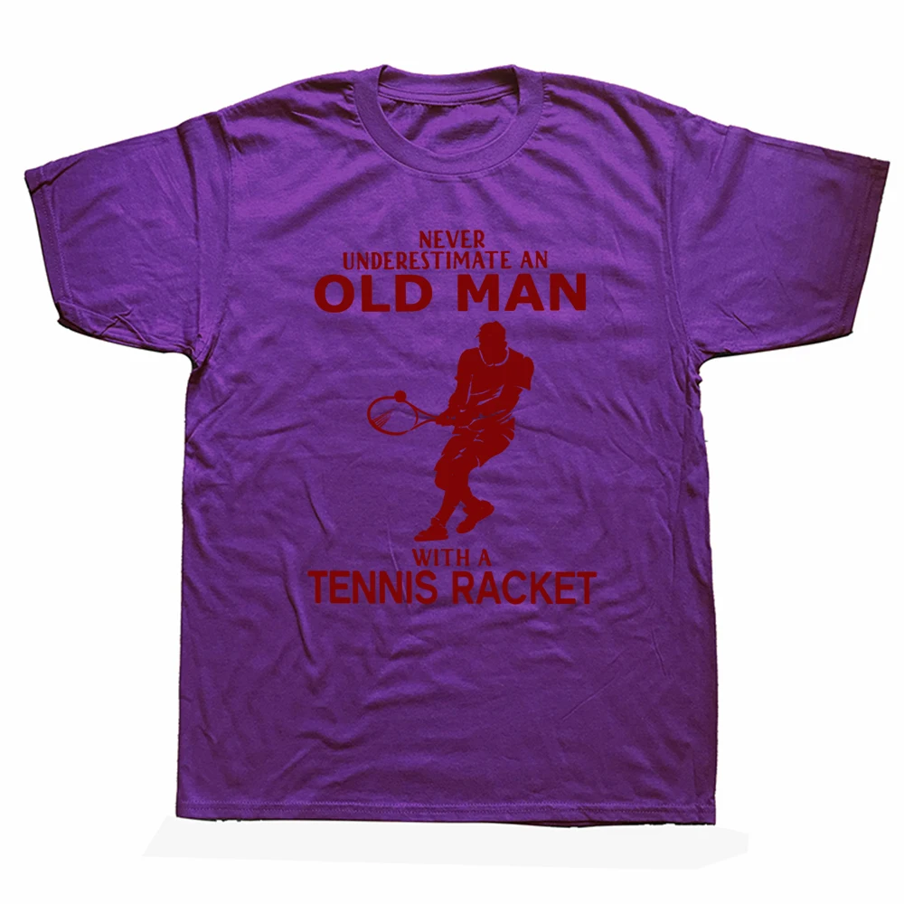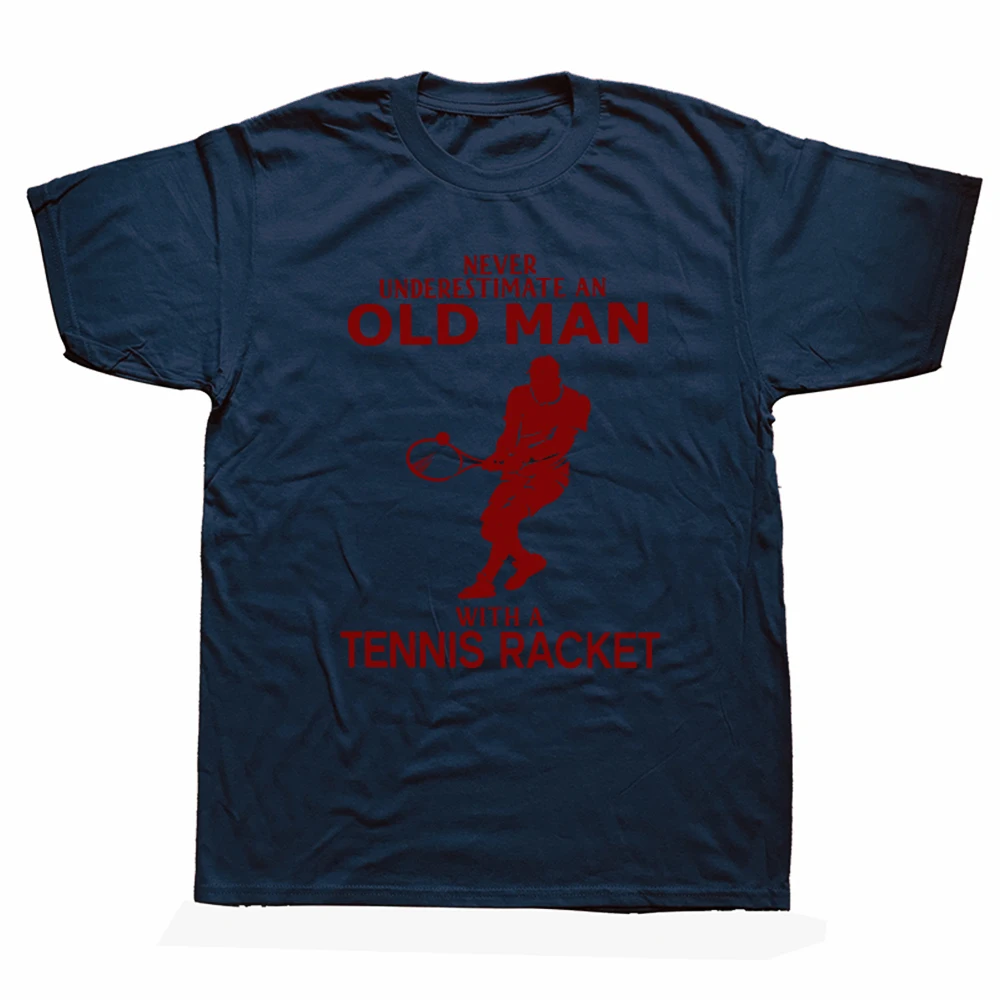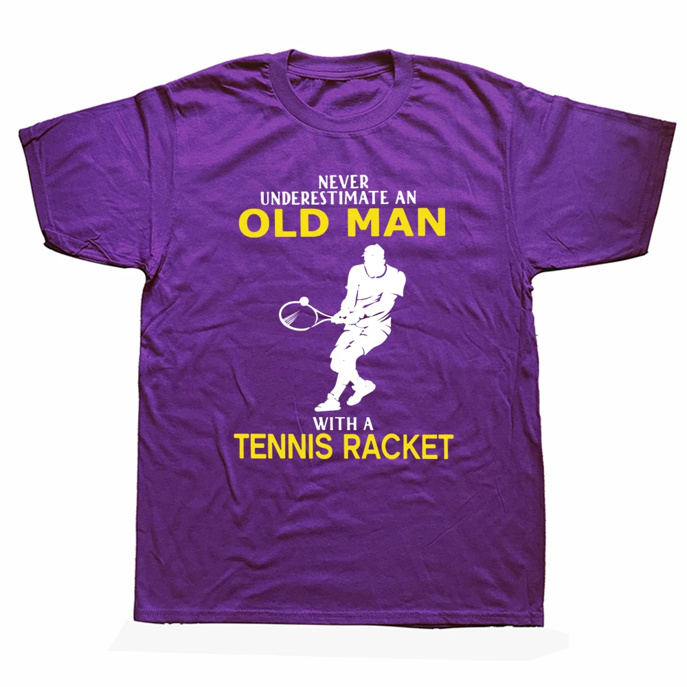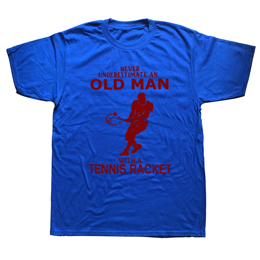 Funny Never Underestimate Old Man With Tennis Racket T Shirts Cotton Streetwear Short Sleeve Birthday Gifts Summer Style