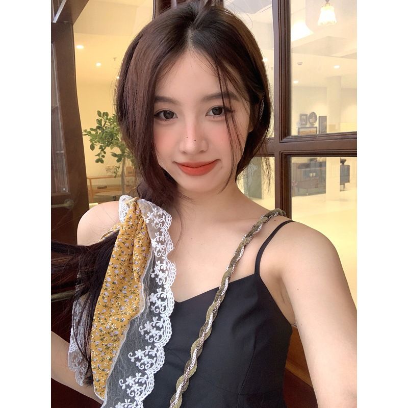 2024 new floral tied hair scarf with high-end feel, shawl, lace and lace patchwork headband, silk scarf for women