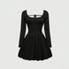 Grouss Gréisst Damen U-Ausschnëtt Sexy Kleed Hierscht a Wanter Héich Taille A-Linn Schnürsenkel Slim Fit Kuerzrock fir Fraen