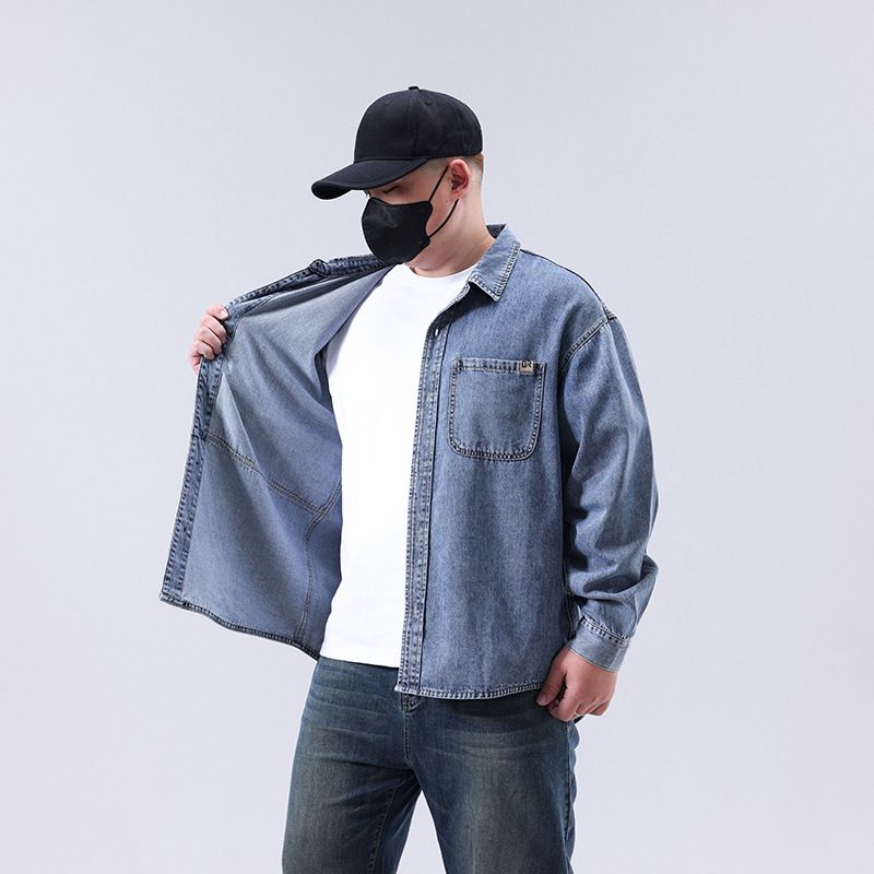 Grouss Gréisst Männer Neit Tencel Denim Hemd Männer Ultradënn Loose Fat Lapel Äis Seid Denim Hemd Männer Grousshandel