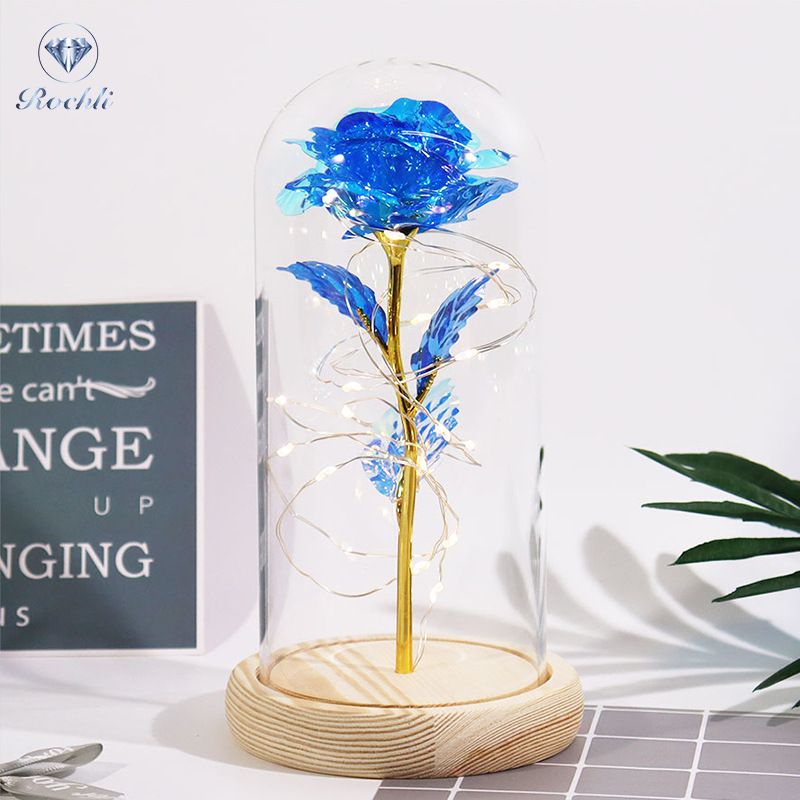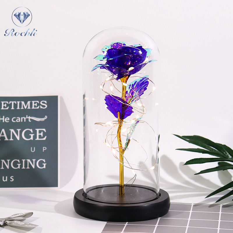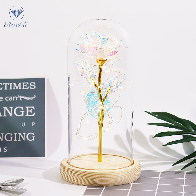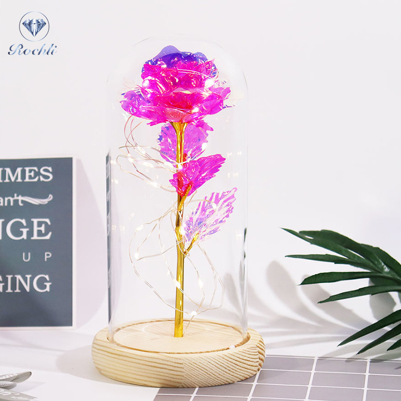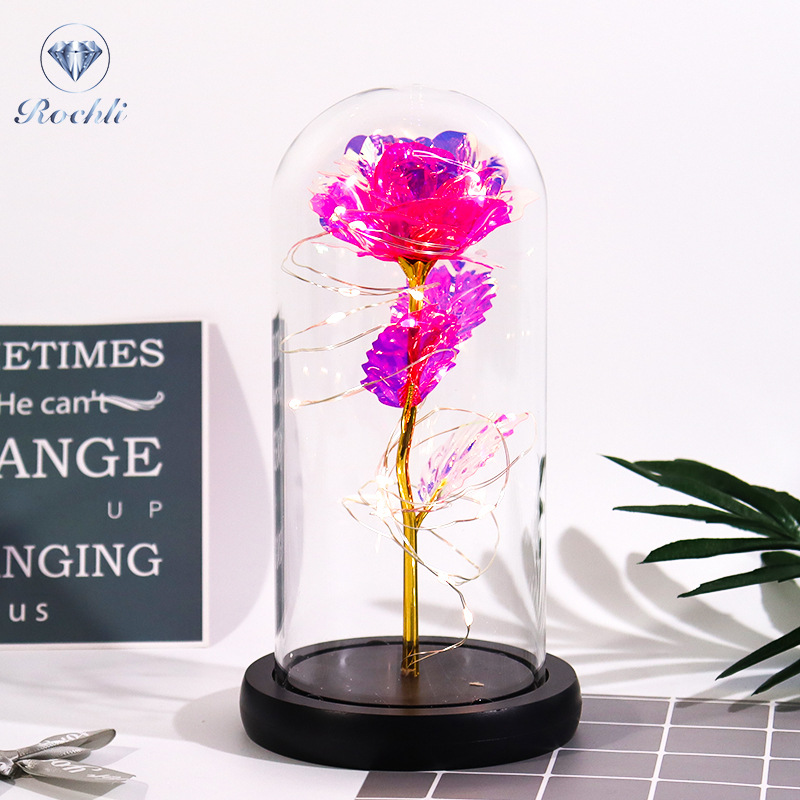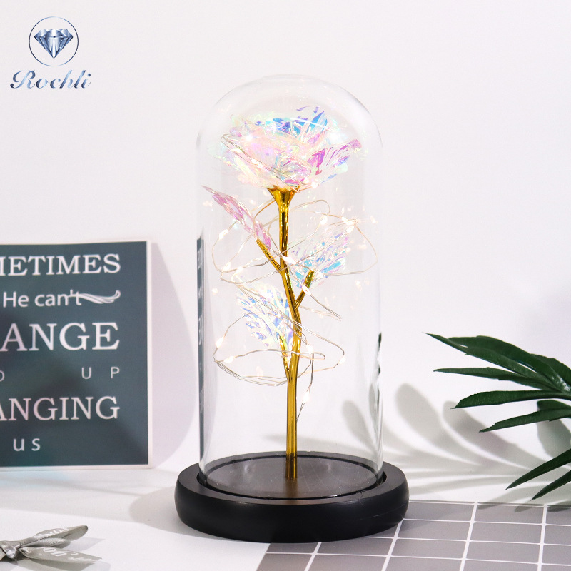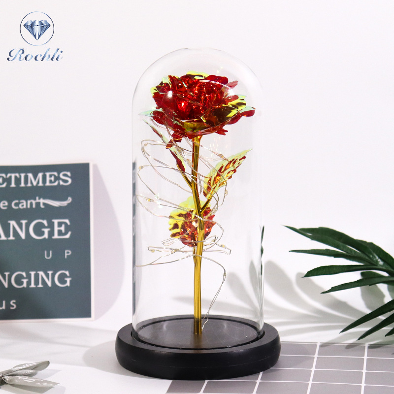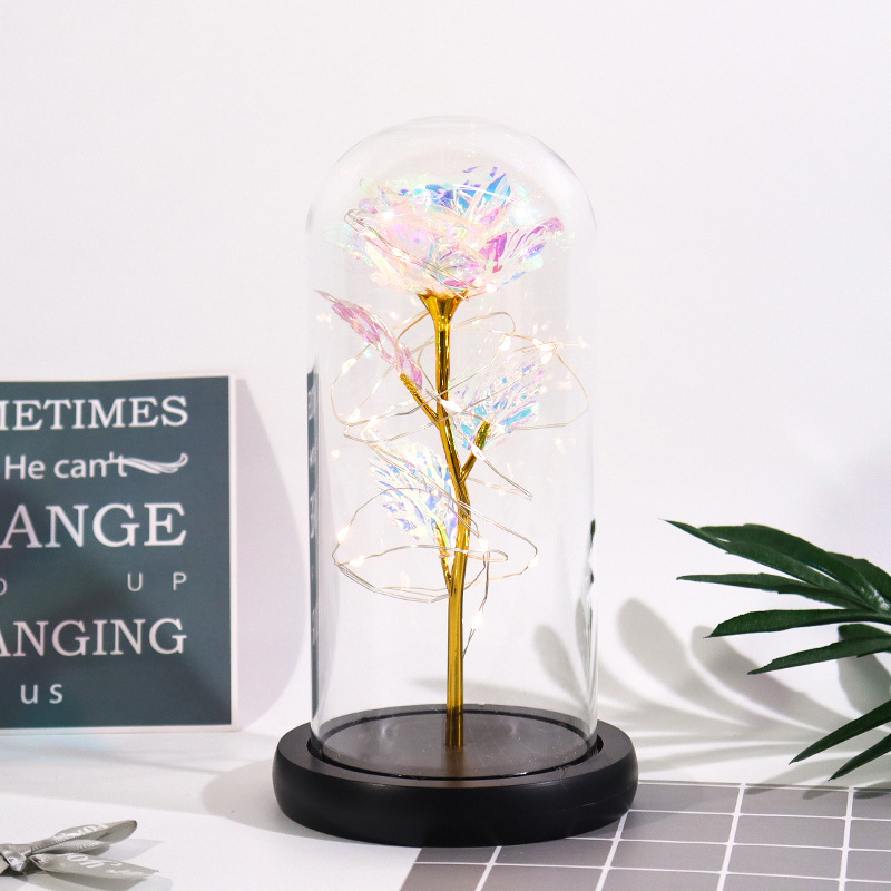 Haus & Gaart Chrëschtdag onstierflech Blummenglaslampeschierm mat Liicht LED Rous Simulatioun Blummen Nuetsliicht Acryl kreativt Kaddo