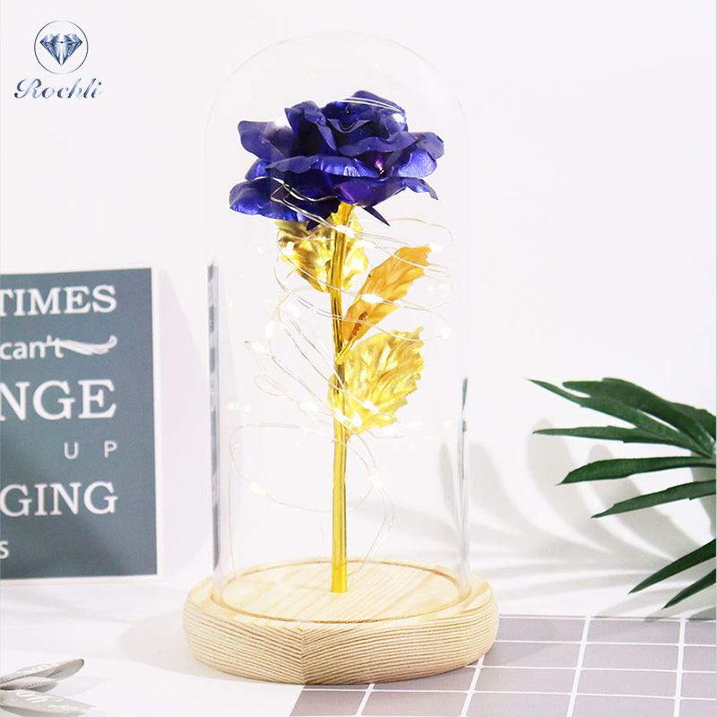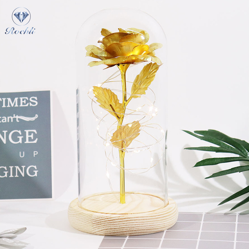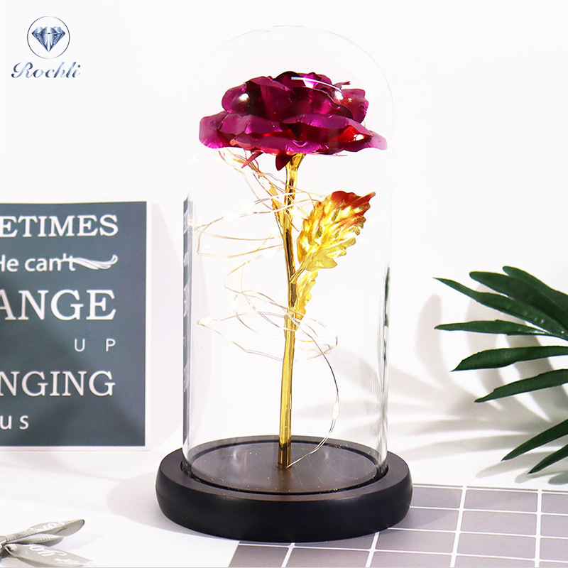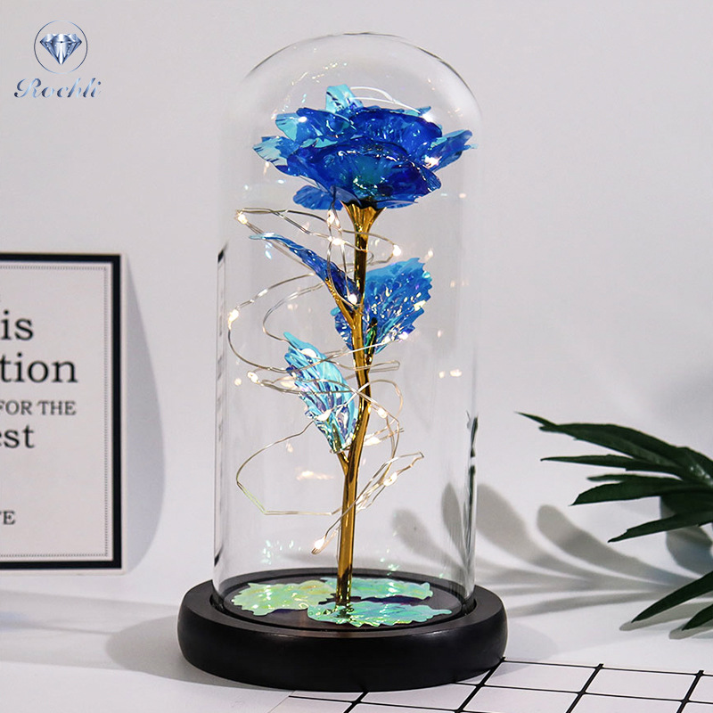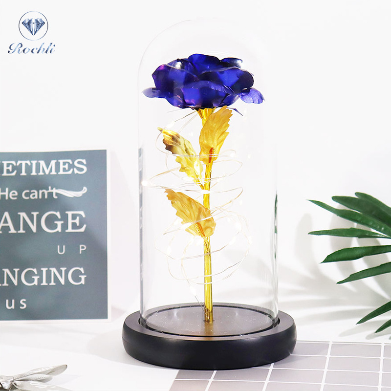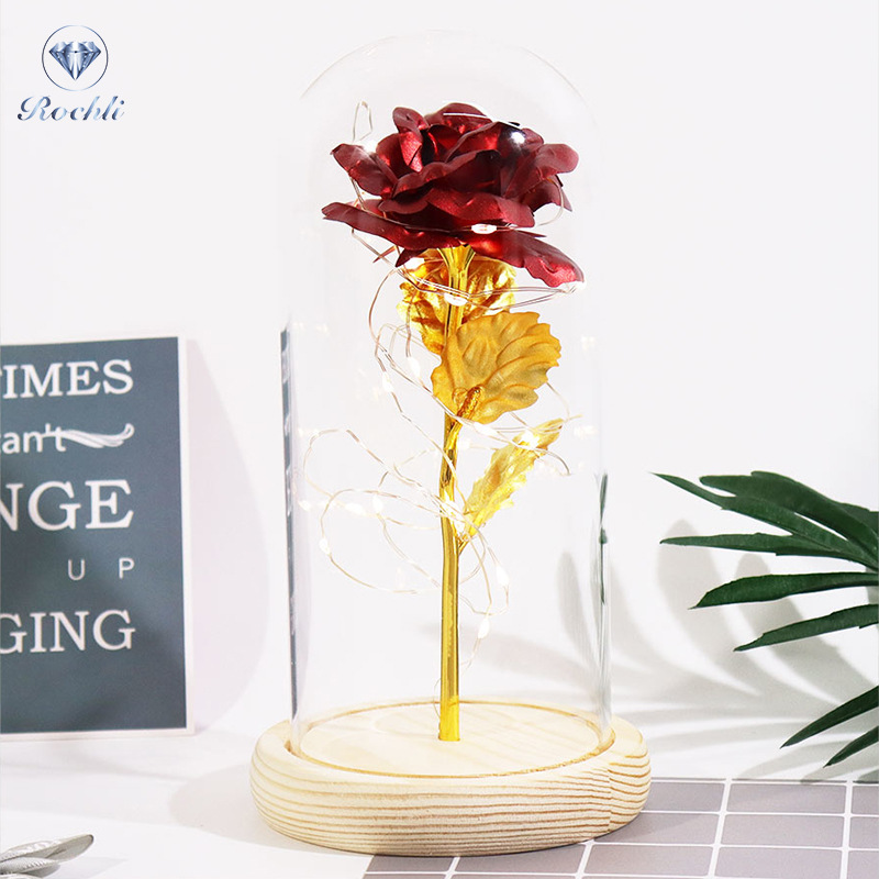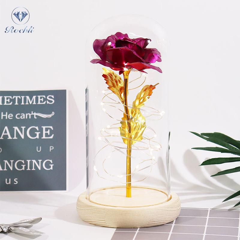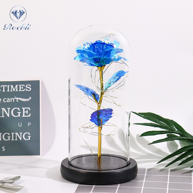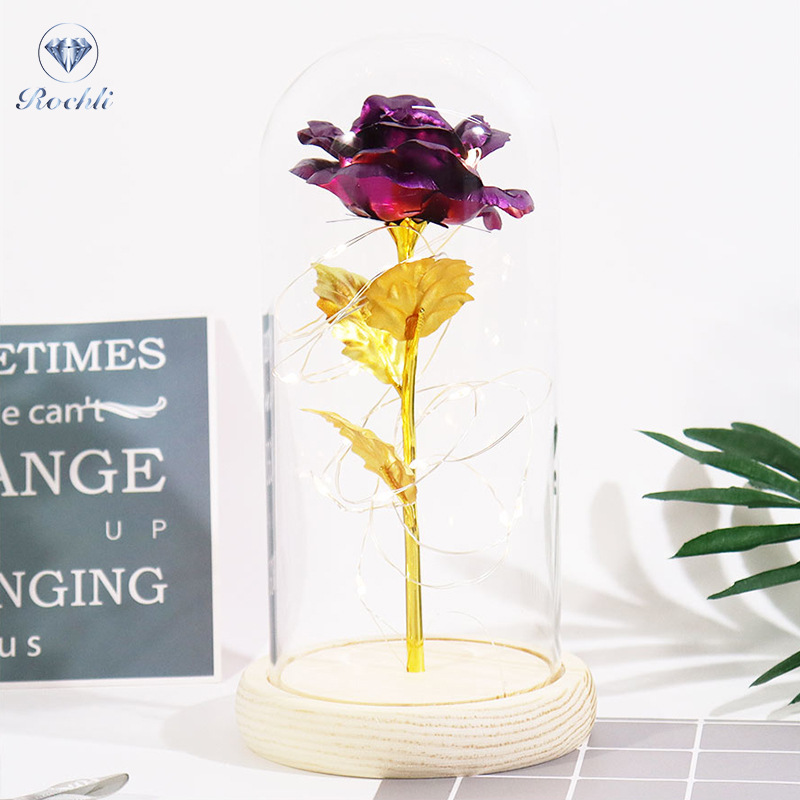 Haus & Gaart Chrëschtdag onstierflech Blummenglaslampeschierm mat Liicht LED Rous Simulatioun Blummen Nuetsliicht Acryl kreativt Kaddo