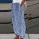 Women Summer Fashion Striped Print Button Casual Versatile Loose Nine Point Pants