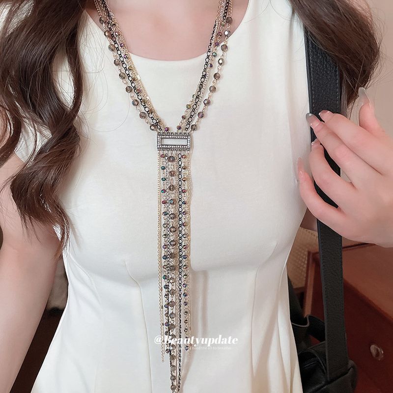 Inlaid Crystal Beaded Multi-layer Rectangular Tassel Necklace Sweater Chain Niche Design Sense Jewelry For Women