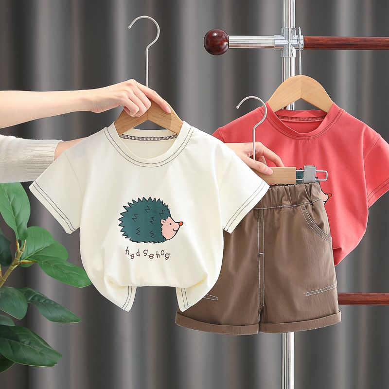 Jongen-Set mat ronnen Hals a kuerzen Äermel, cool Summerkleeder fir Kanner vun 1-2 bis 3 Joer