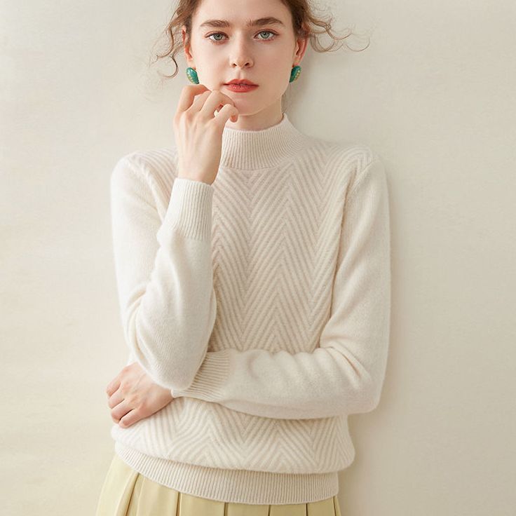 【 Cashmere Family 】 Hooded Half High Neck Sweater Short Loose Wool Base Sweater Women's Thick Knitted Sweater Inner