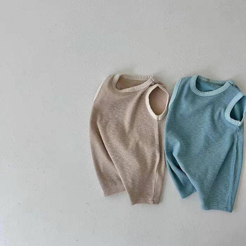 Koreanesch-Stil Ins Einfarweg Hängend Baby Kuerz Kloteren Summer Äermlos West Eendeel Kloterkleedung Atmungsaktiv Kotteng Männer a Fraen Schatz