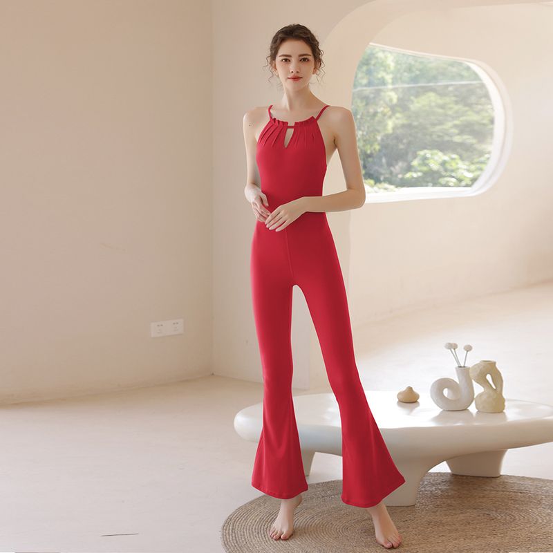 LazyZoom Silk Elegant Aerial Yoga Suit One-piece Wrinkled Hollow Tight Professional Sports Integrated Sexy Jumpsuit