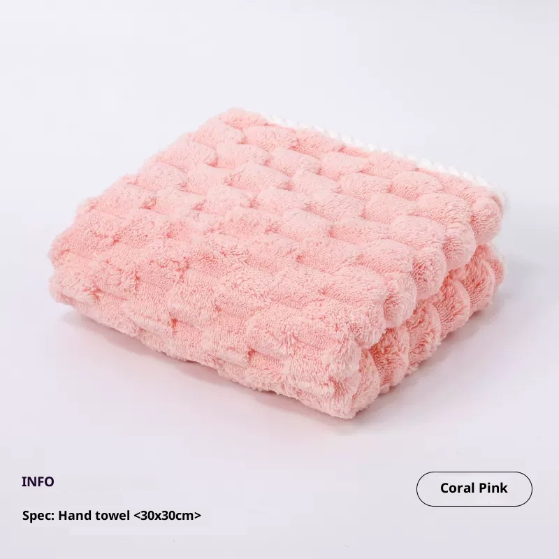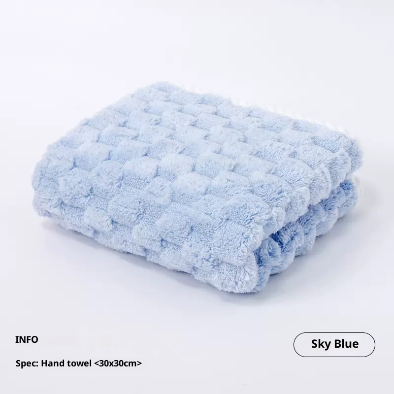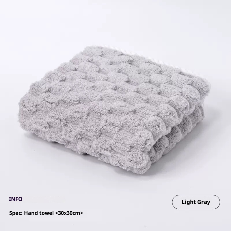 Lillian Cloud Grid Coral Fleece Small Hanging Thickened Bathroom Cute Baby Hand Towel Absorbent Quick-Dry