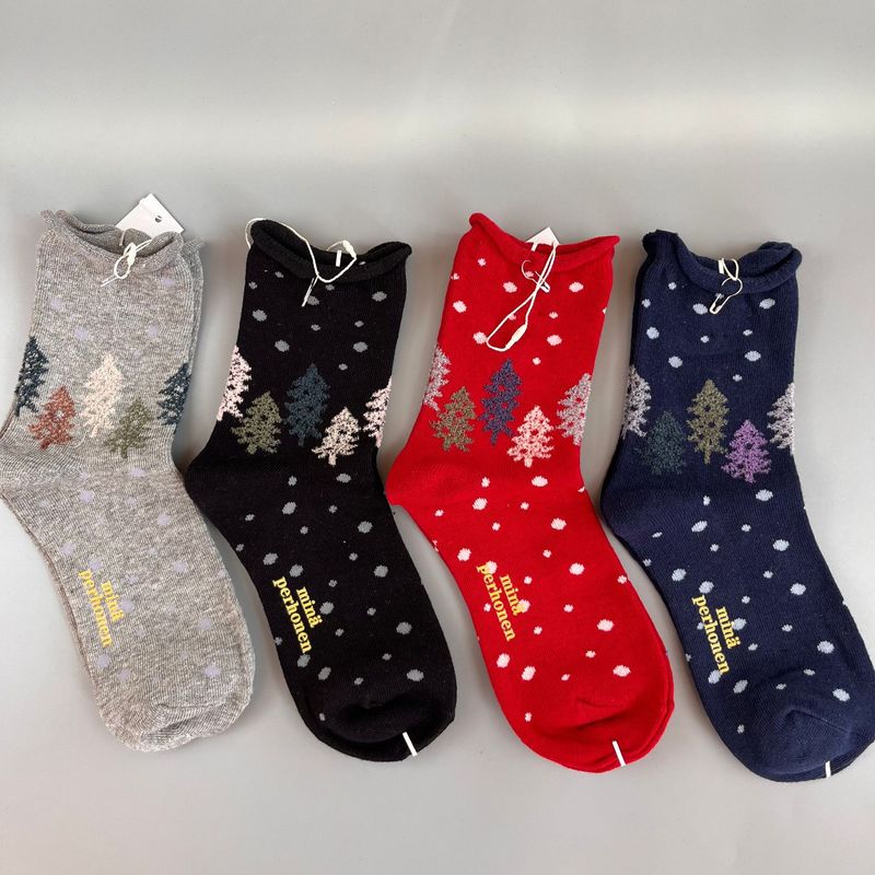 Japanese Style Akira Minagawa Mina Perhonen Style Retro Snowflake Christmas Tree Rolled Edge Autumn Winter Mid-Calf Socks
