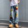 Männerkleeder Handduch gestickte Lächer Jeans Männer Vibe High Street Gewaschen Hosen Summer Trendy locker Breetbeen Wëschhosen