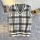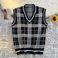Männerkleeder Retro Karoen Pulloverweste Männer Hierscht a Wanter College-Stil Weste V-Ausschnëtt Pulloverweste Gestapelten Mantel