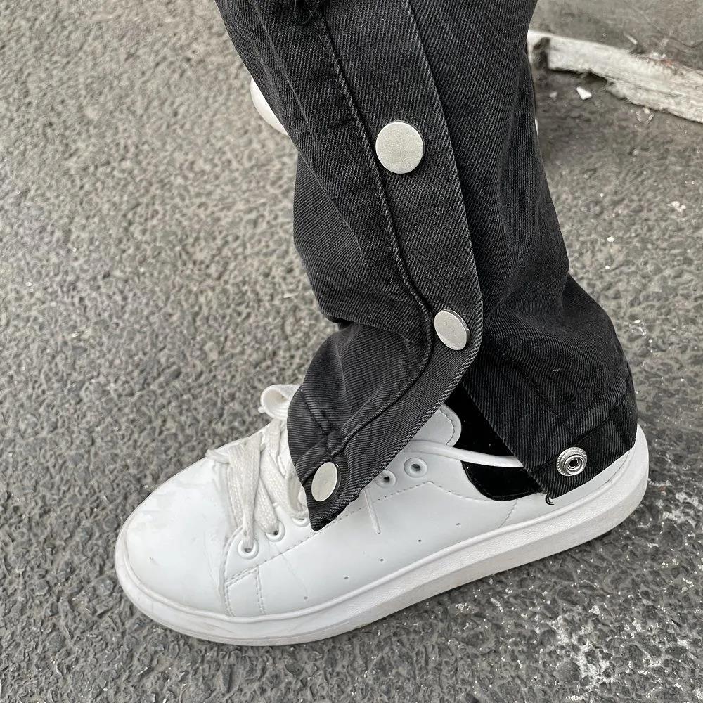 Majira Occidental High Street Side Button Jeans for Men's Summer Hip Hop Straight Loose and Versatile Jeans Vibe