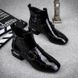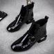 【 Quick Refund 】 Martin Boots 2020 Autumn/Winter New Lacquer Leather Flat Bottom Square Head with Plush to Keep Warm British Style Short Boots Large Leather Shoes for Women