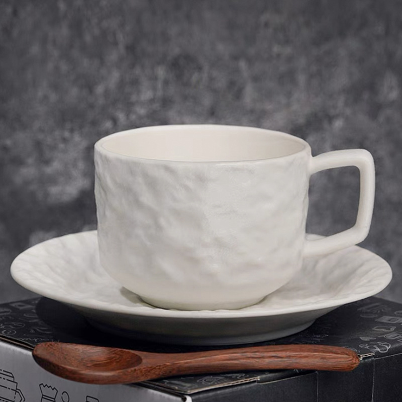 Matte Rock Pattern High Value Ceramic Coffee Cup And Saucer Set With Spoon Afternoon Tea Storage Rack Retro Home Gift Box