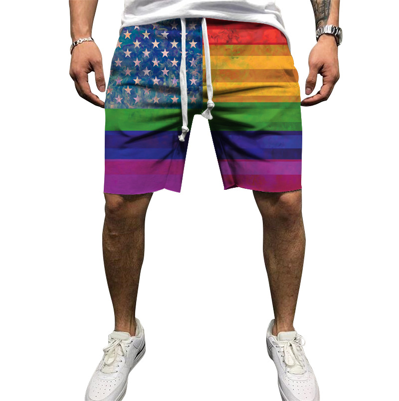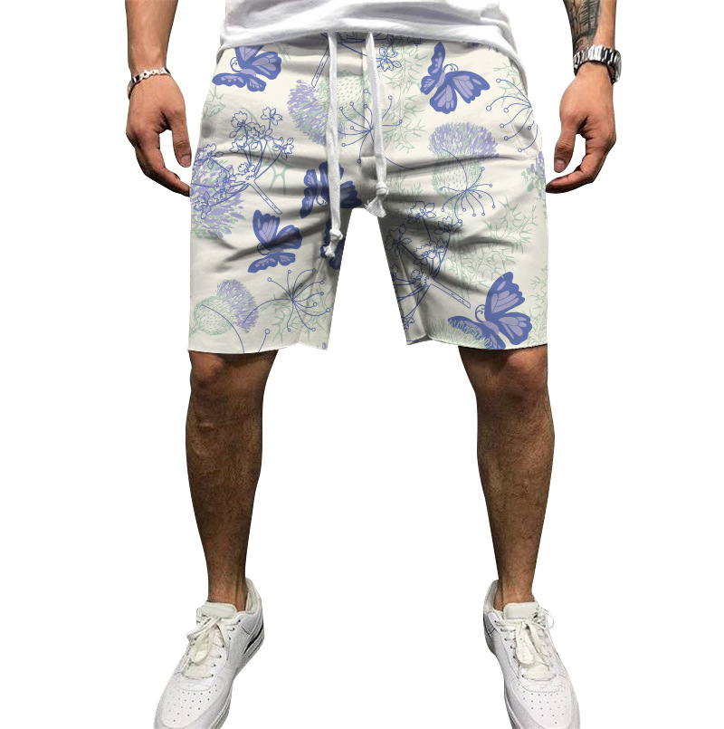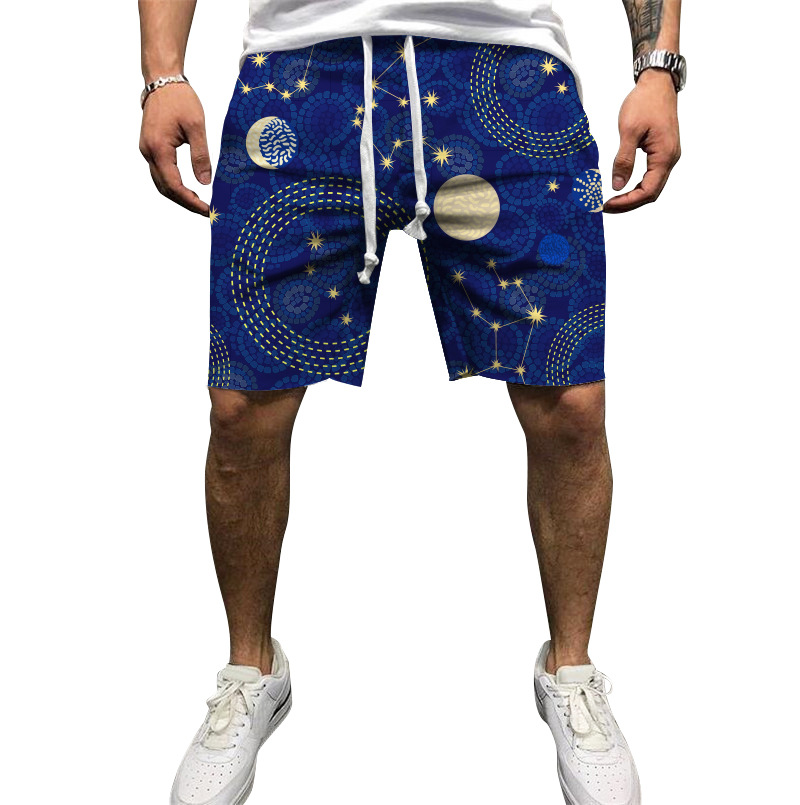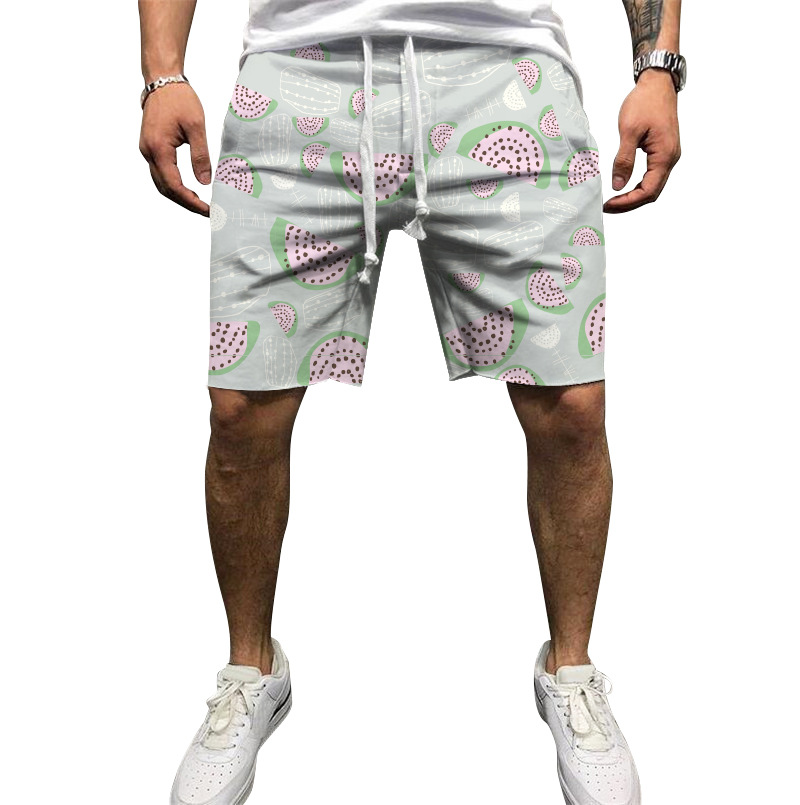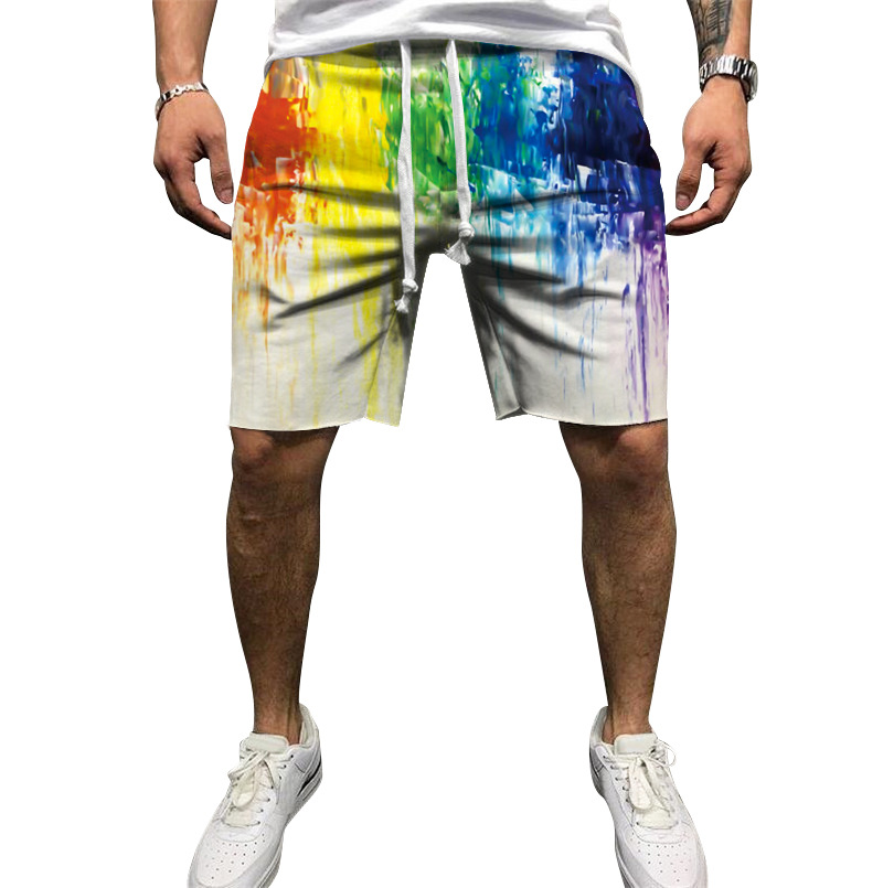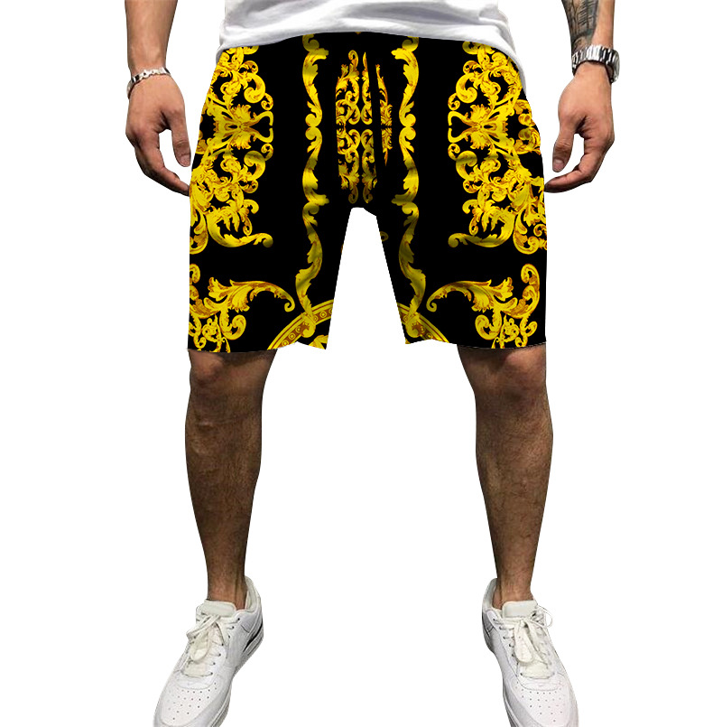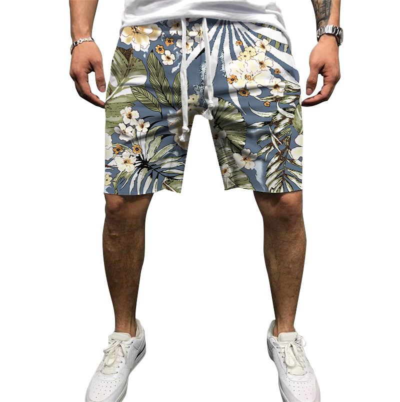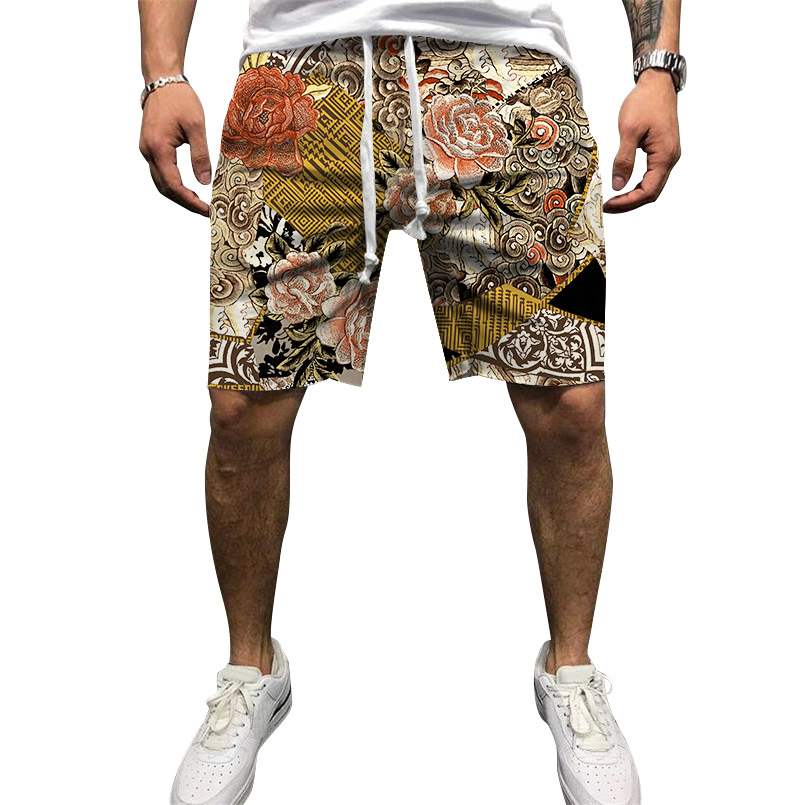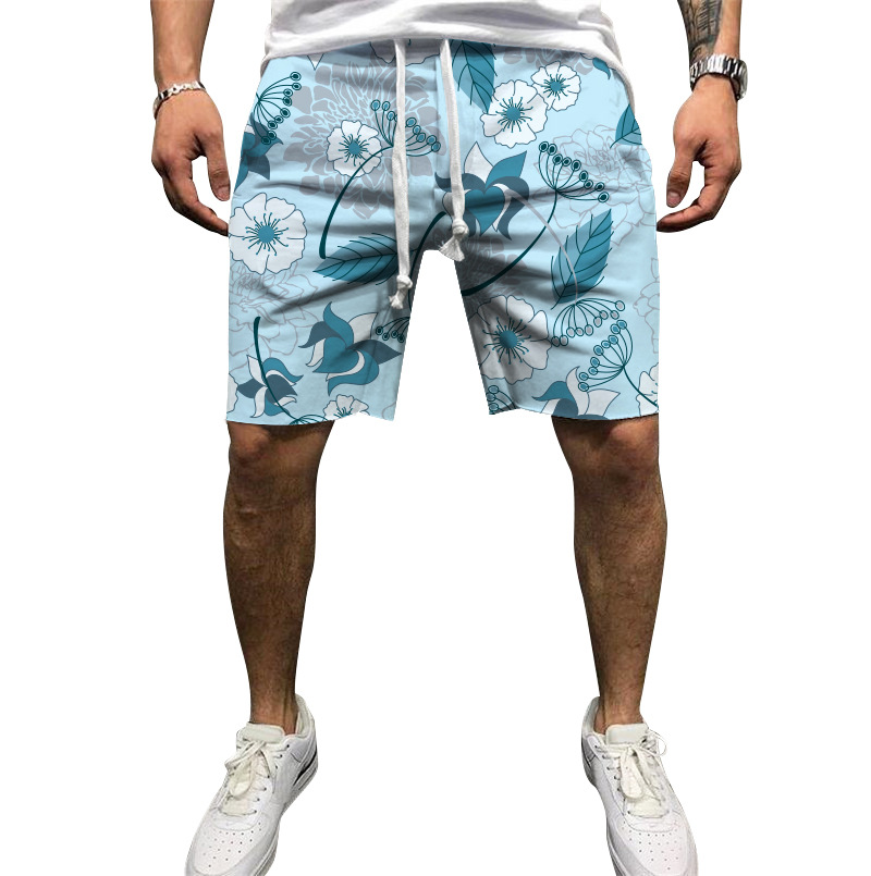 2023 men's summer new 3D printed drawstring loose sports shorts men's beach pants
