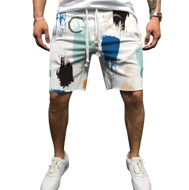 men's beach pants 2024 summer new 3D printed drawstring loose sports shorts