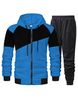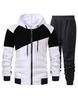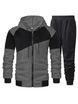 Men's Color-Block Hooded Jacket & Jogger Set - Fleece-Lined Zip-Up Tracksuit With Drawstring Waist