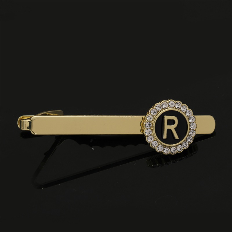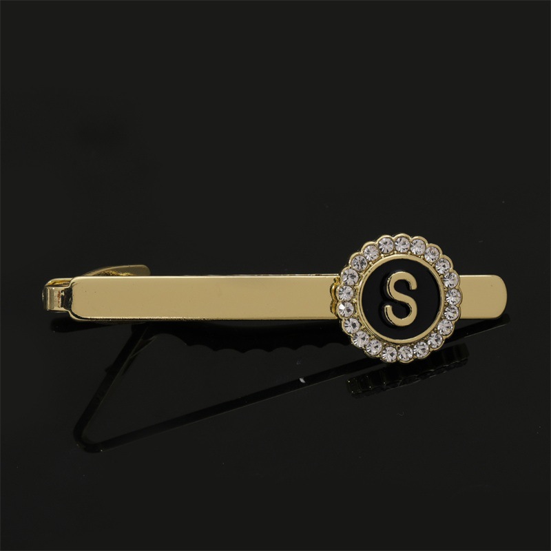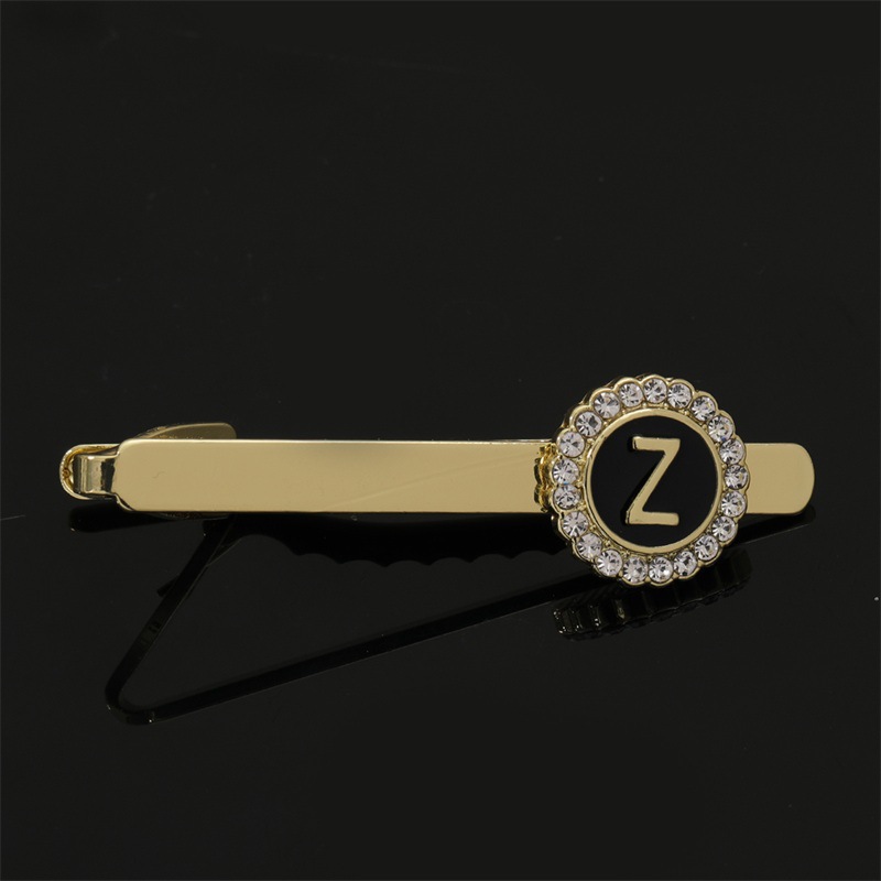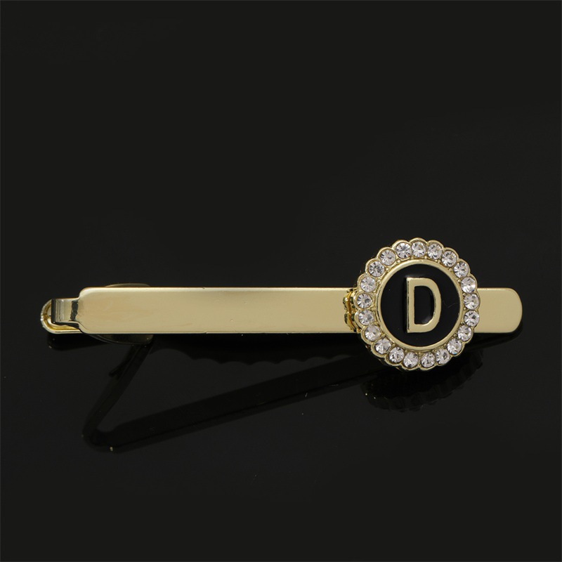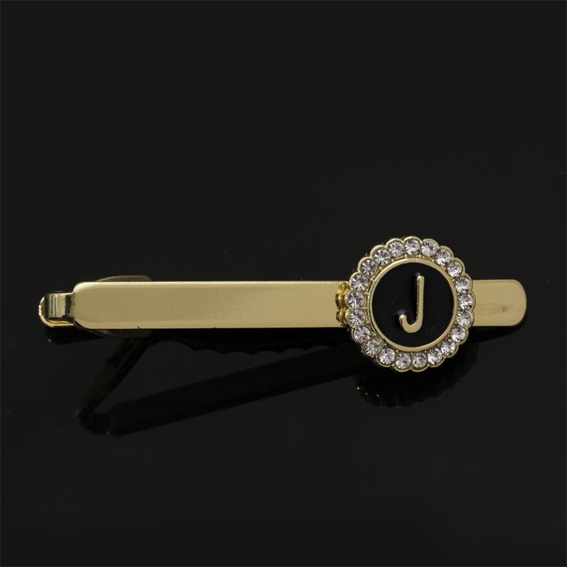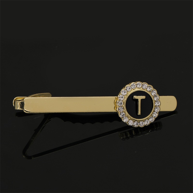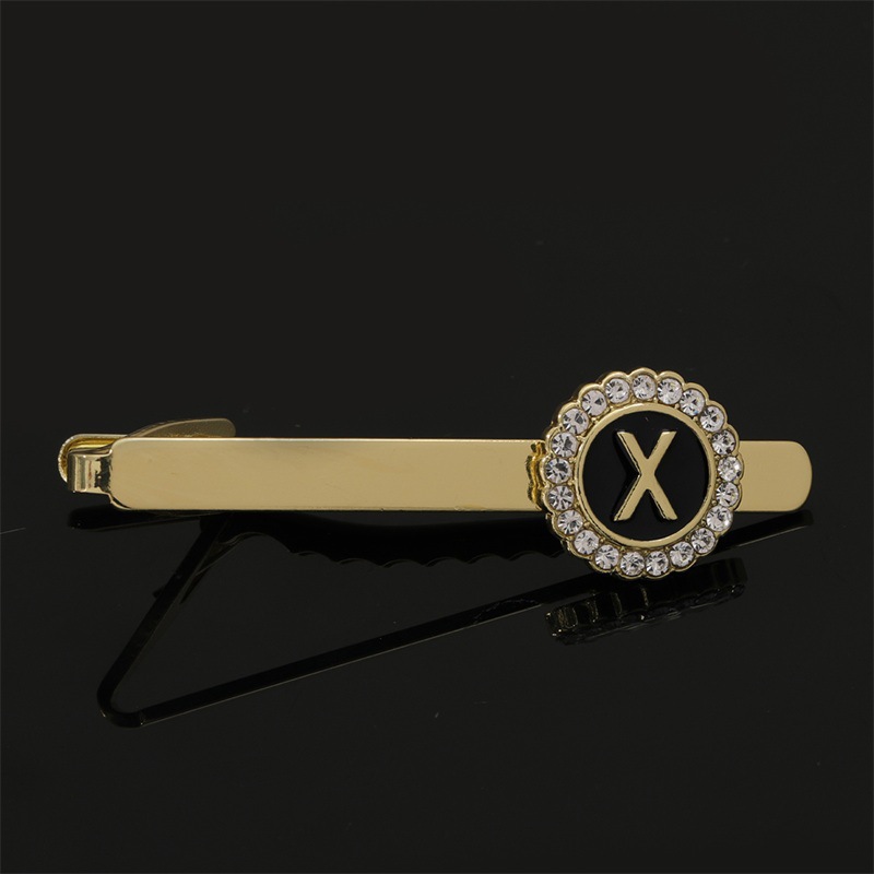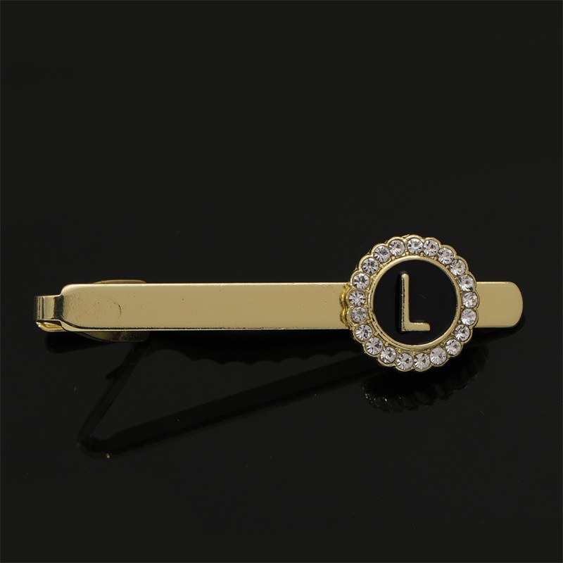 European and American Hot-Selling Round Diamond-Studded Cufflinks for Men, Creative 26 Styles with English Letters, Suit Business Cufflinks, Tie Clips Set
