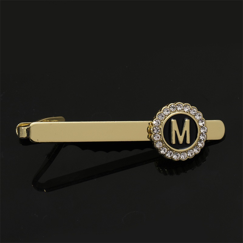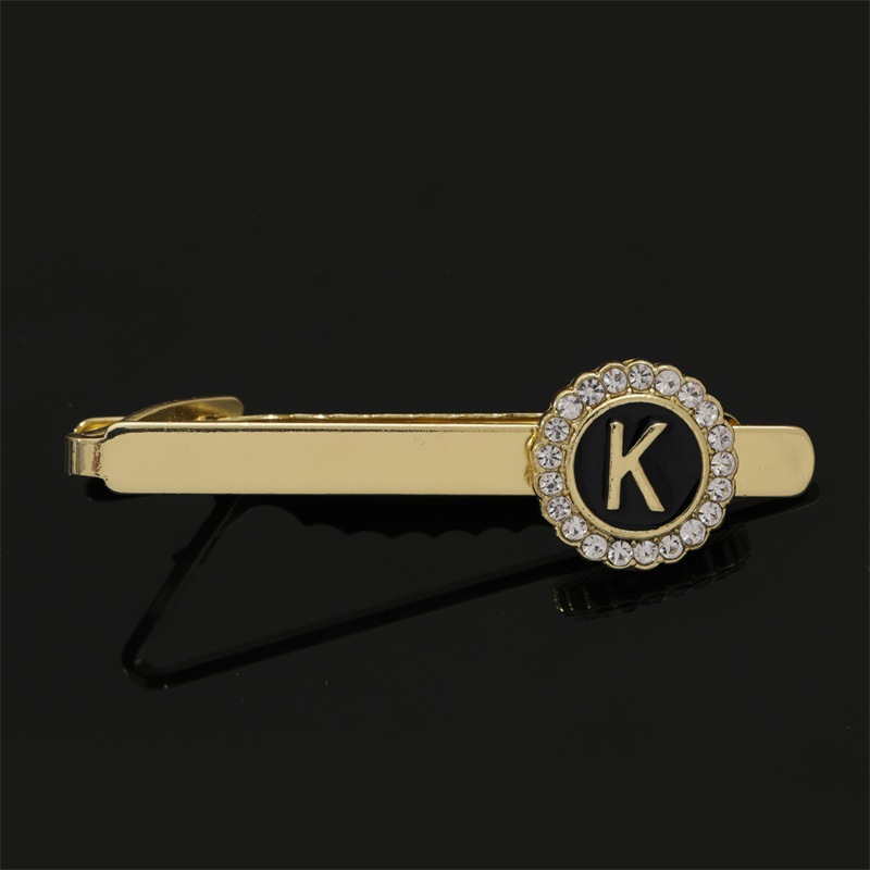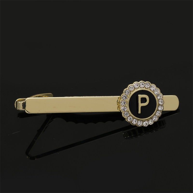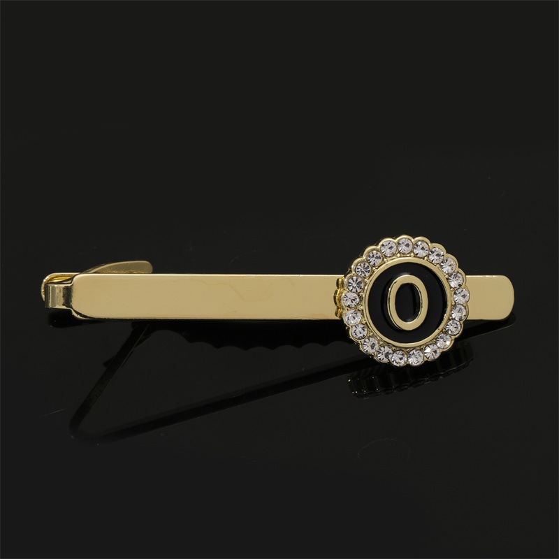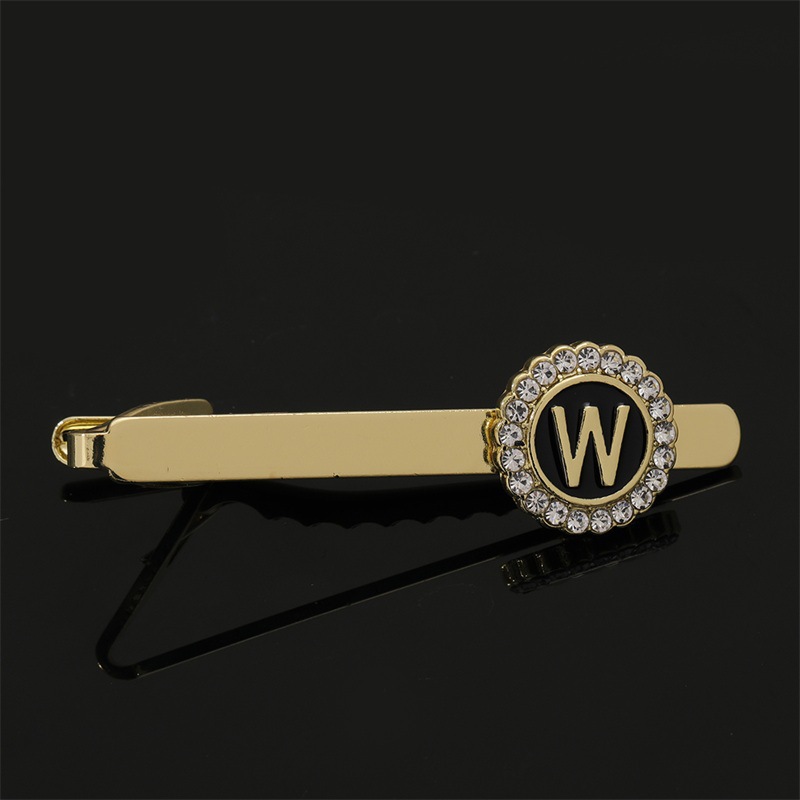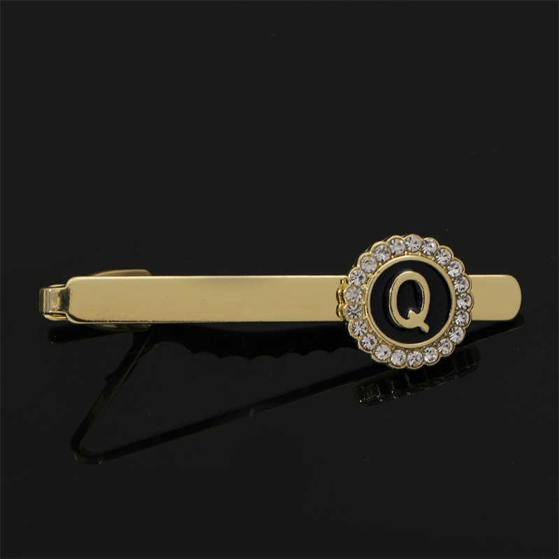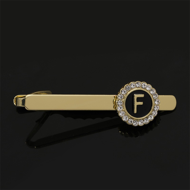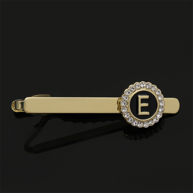 European and American Hot-Selling Round Diamond-Studded Cufflinks for Men, Creative 26 Styles with English Letters, Suit Business Cufflinks, Tie Clips Set
