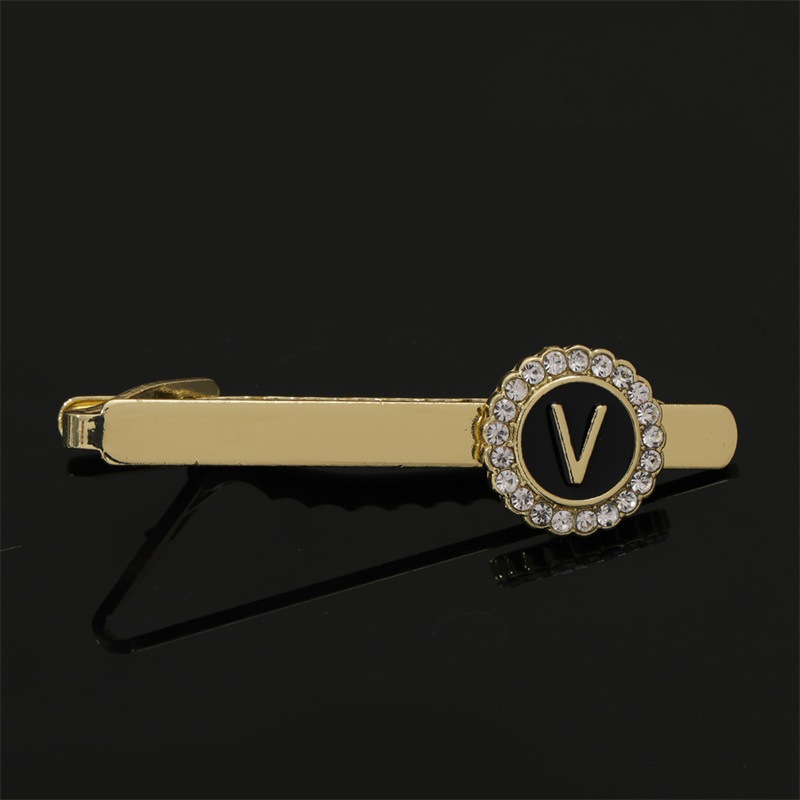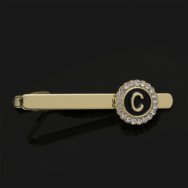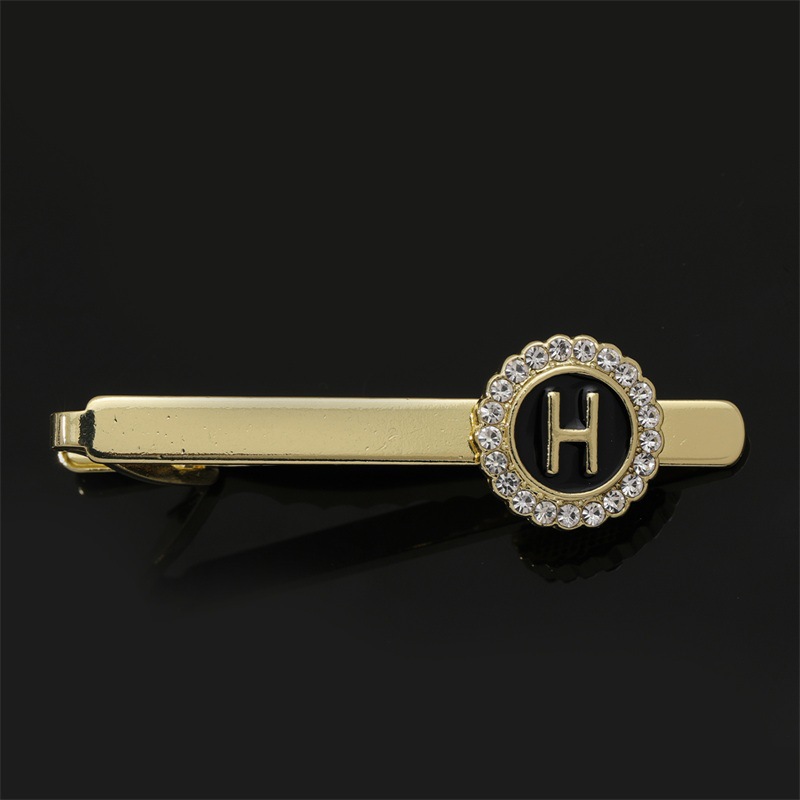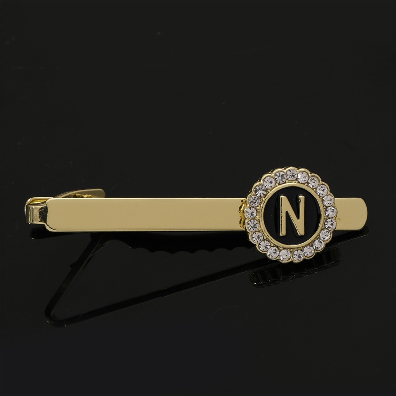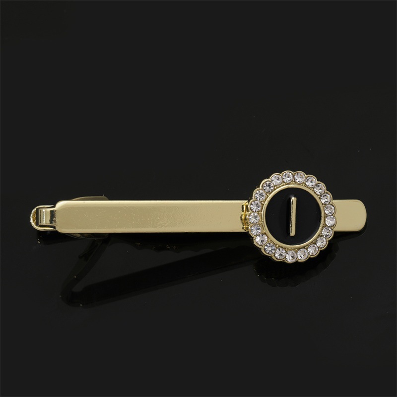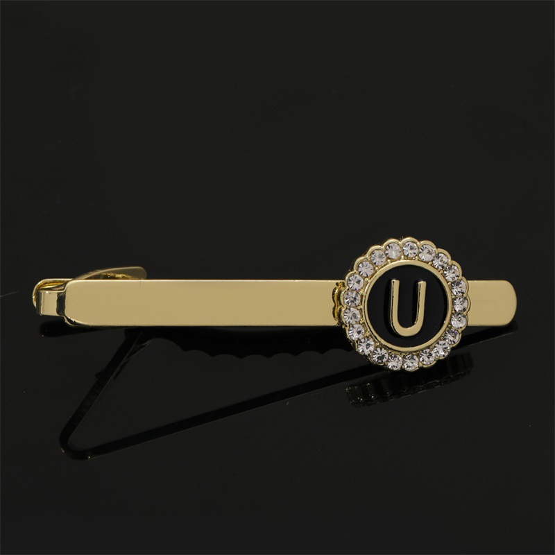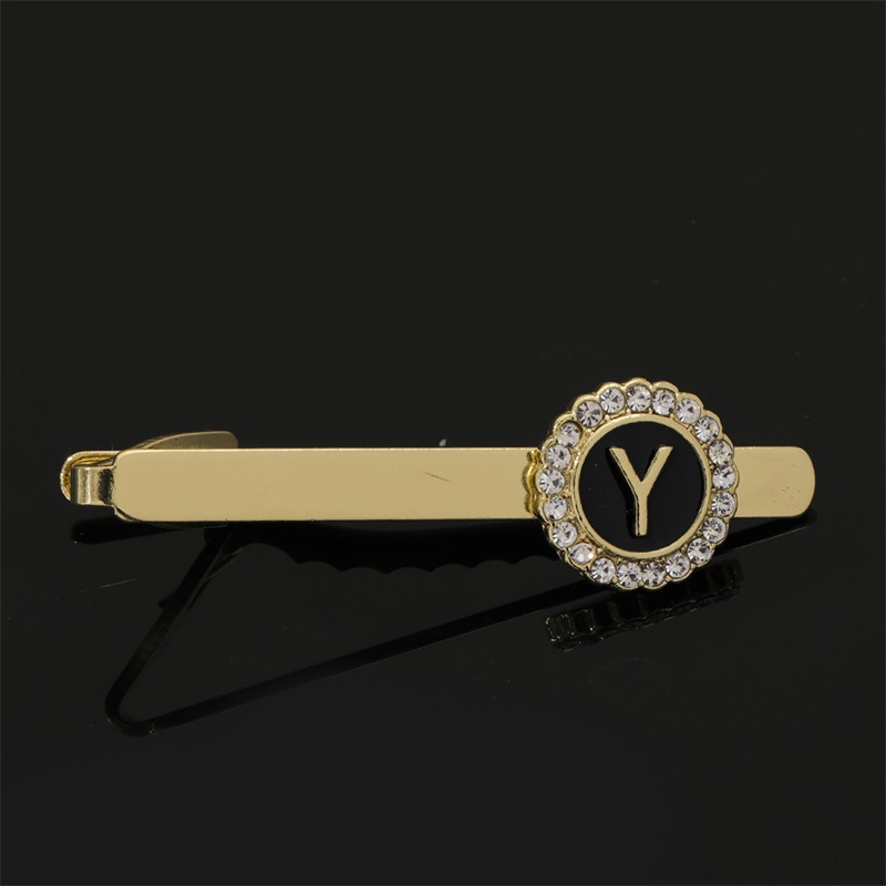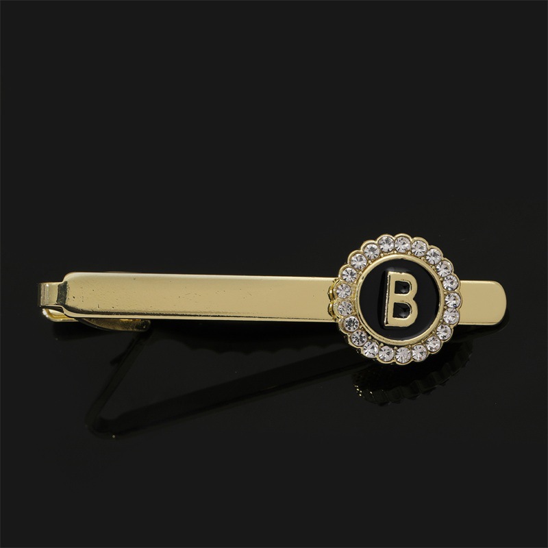 European and American Hot-Selling Round Diamond-Studded Cufflinks for Men, Creative 26 Styles with English Letters, Suit Business Cufflinks, Tie Clips Set