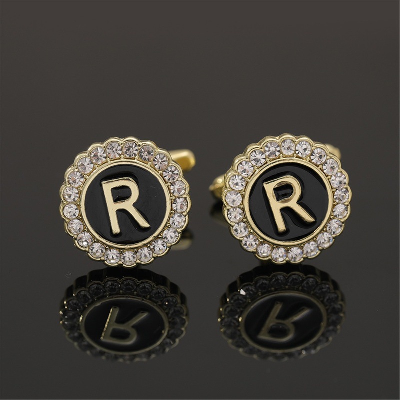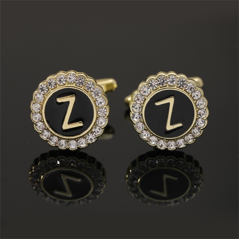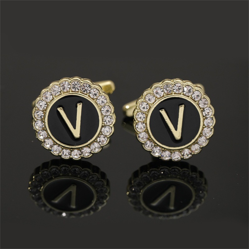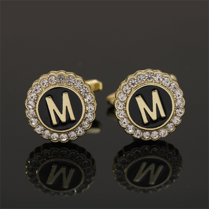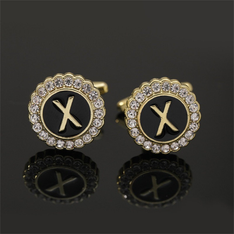 European And American Hot-Selling Round Diamond-Studded Cufflinks For Men, Creative 26 Styles With English Letters, Suit