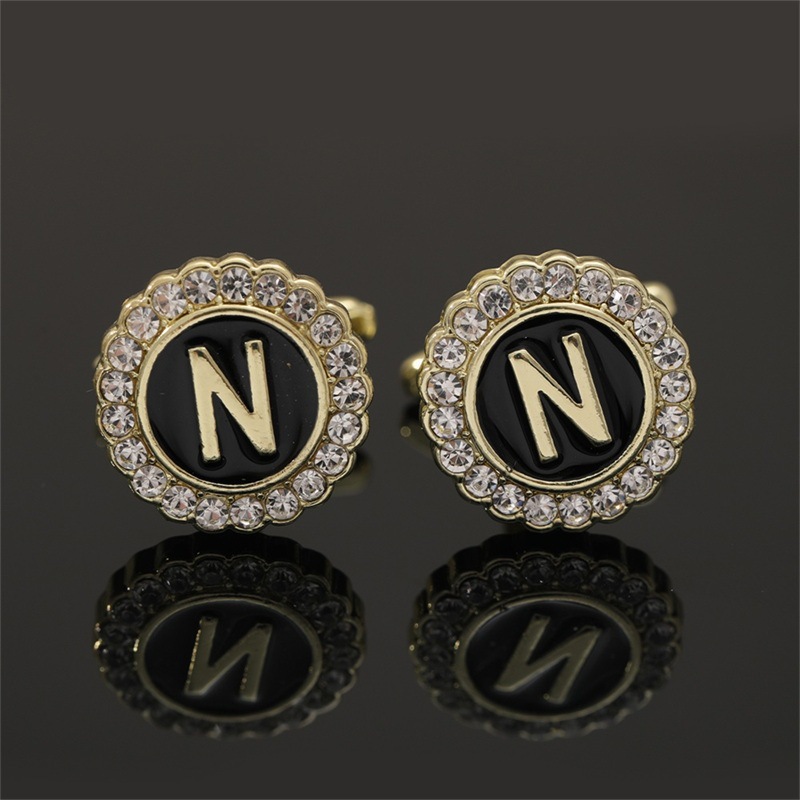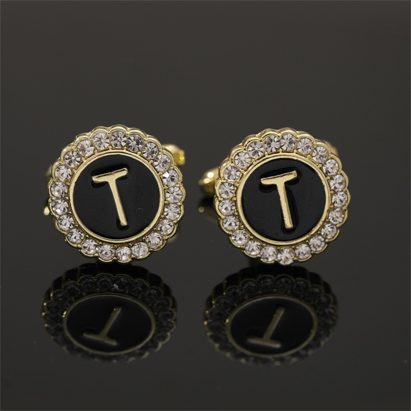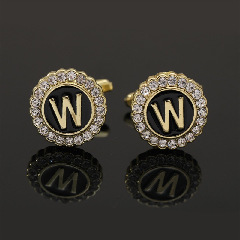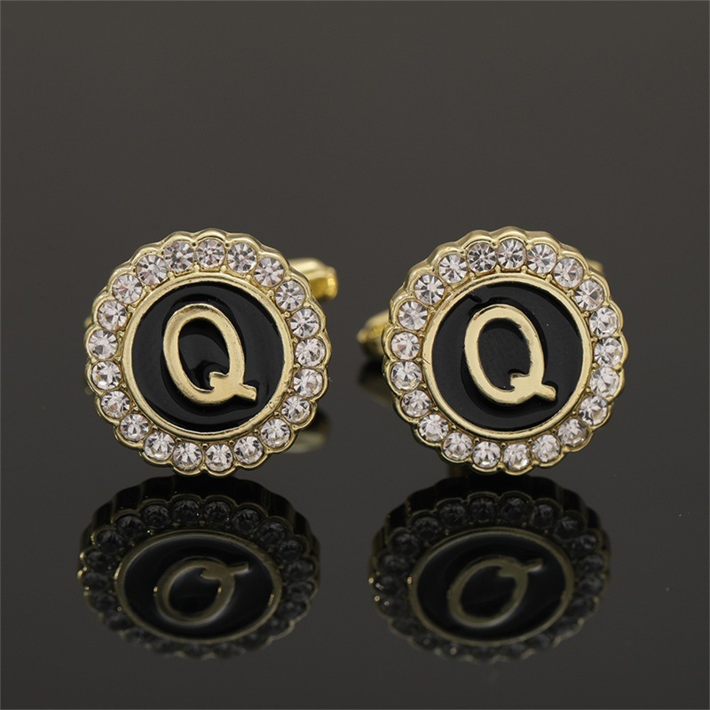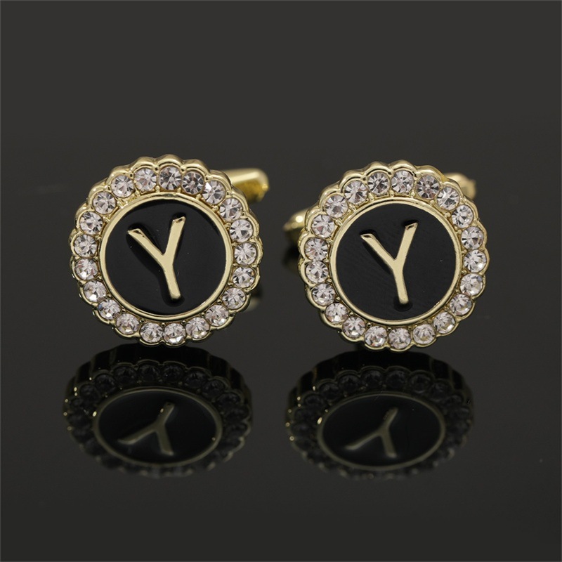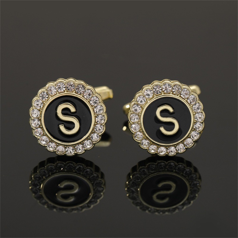 European And American Hot-Selling Round Diamond-Studded Cufflinks For Men, Creative 26 Styles With English Letters, Suit