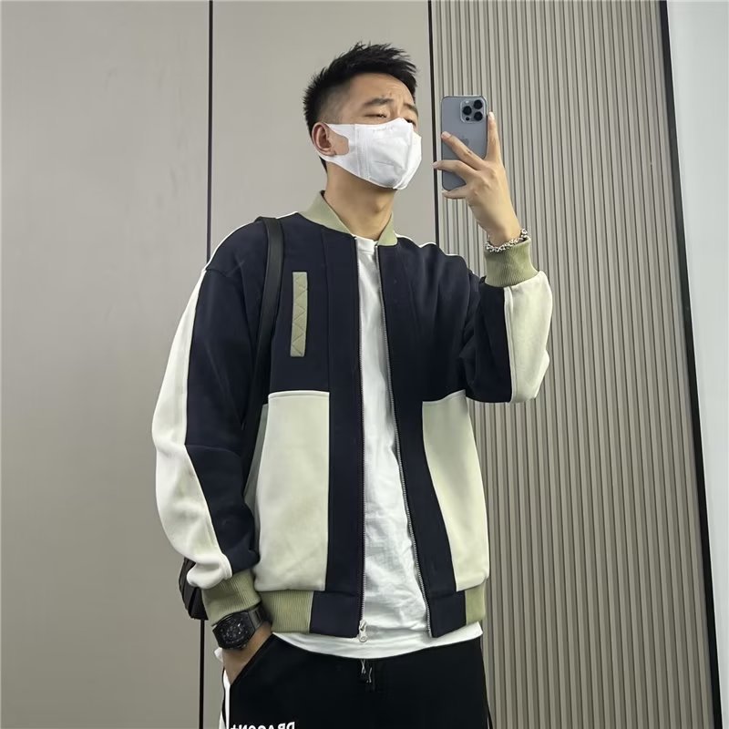 New Spring and Autumn Men's Baseball Collar Jacket, Men's Loose Trendy Brand Versatile Casual Top