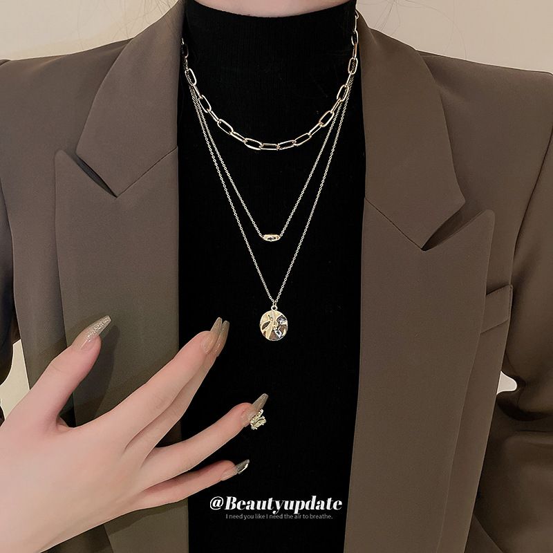 Metal Irregular Layered Geometric Necklace, Simple And Cool Style Commuting Sweater Chain, Niche High-end Jewelry