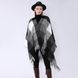 Minimally designed shawl with black and white checkered fringe, autumn and winter warm cloak, street cape