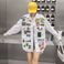Modesch Jackett aus onregelméisseg gewäschtem Denim fir Fraen mat verschiddene Labels