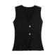 Women's Clothing Fashion Gold Button Knitted Vest Pleated Skirt Suit