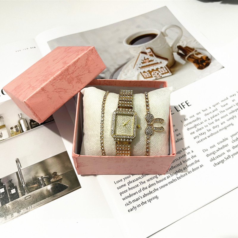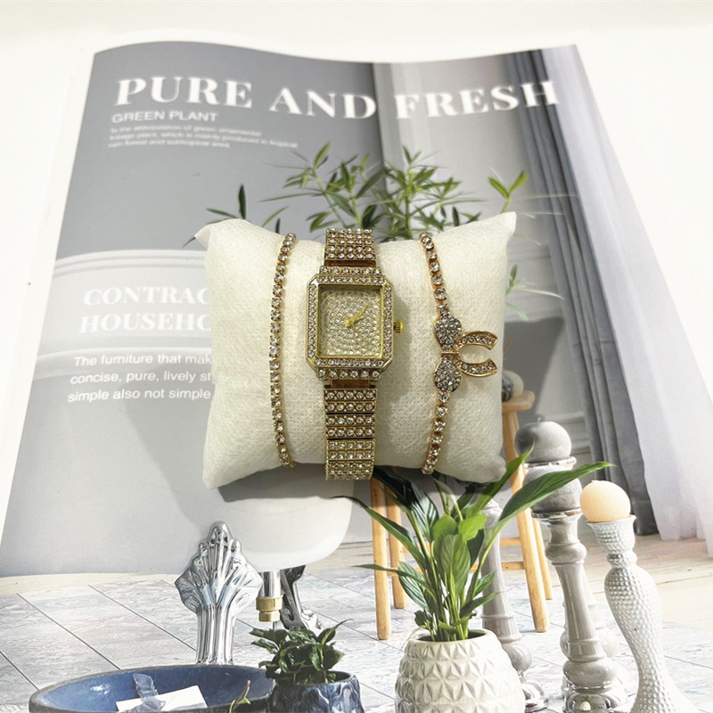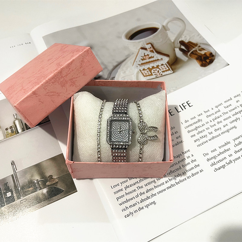 Nei waarm Moud einfach Diamant kleng quadratesch Auer Moud dräideeleg Damen Auer Kaddobox Quarz Auer
