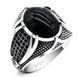 Black Diamond-Studded Curved Knife Men's Oval Thai Silver Ring Jewelry