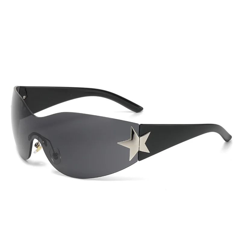 Punk One Piece Woman's Sunglasses Goggle New Y2k Rimless Sun Glasses 2000's Shades Eyewear UV400 Female Designer Star