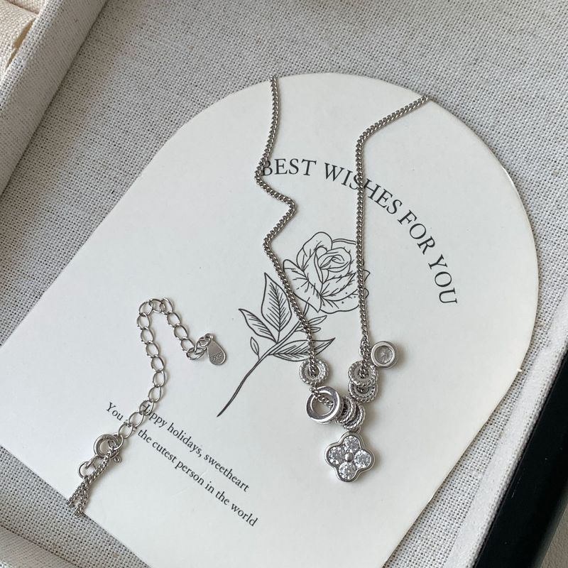 S Pure Silver Inlaid Diamond Four-Leaf Clover Running Ring Necklace For Women Korean Niche Design Collarbone Chain
