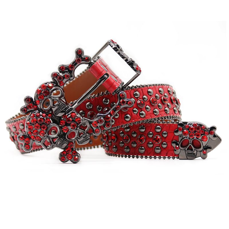 Schädelkopf mat ageleetem Strass Punk Perséinlechkeet Net-Mainstream Moud Gürtel