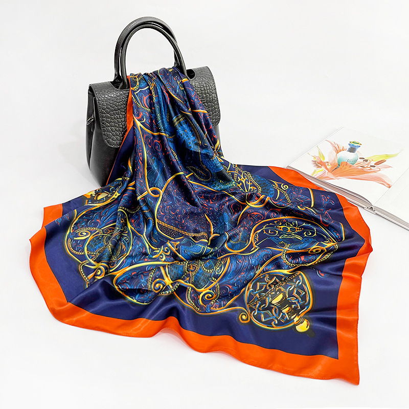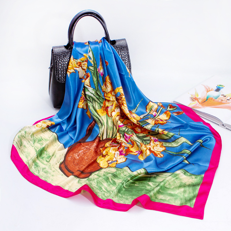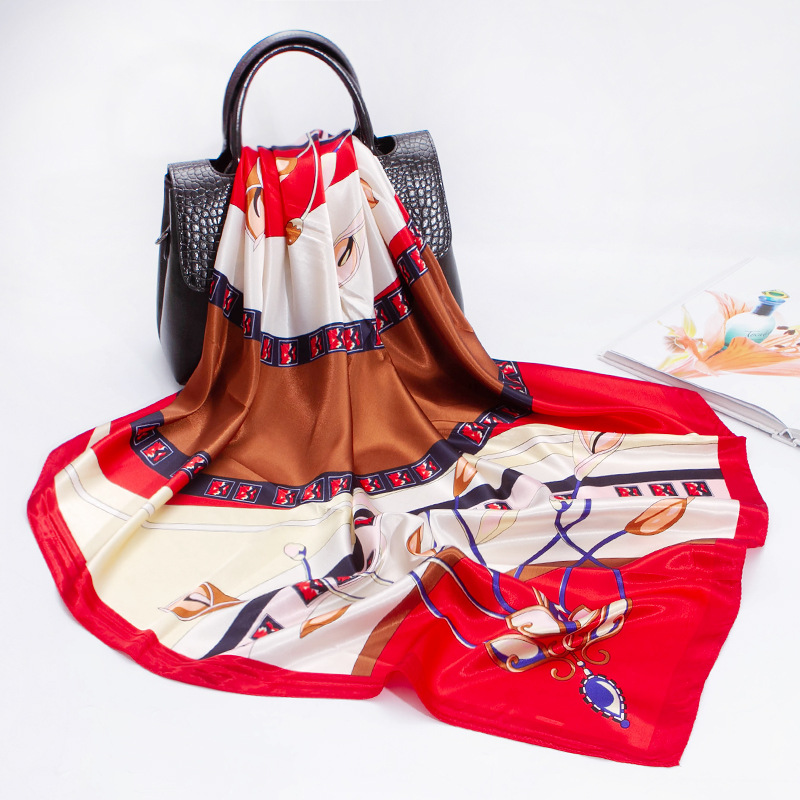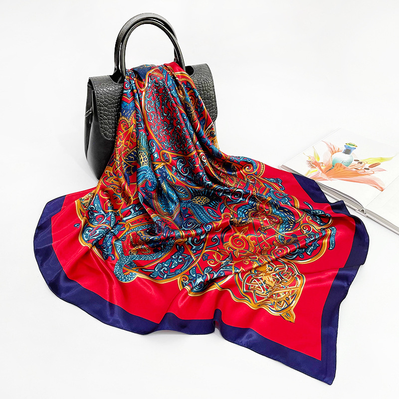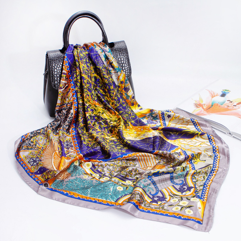 Silk Scarf Women's Spring/Summer Imitation Silk Printed Flight Attendant Scarf 90x90cm Large Square Scarf with Hand Gift Shawl