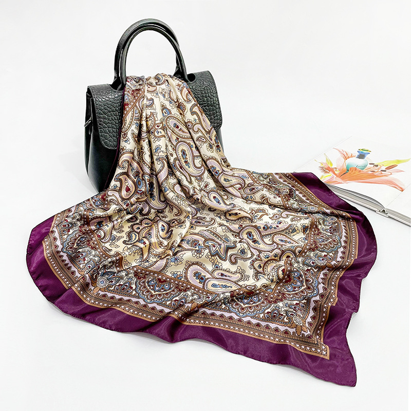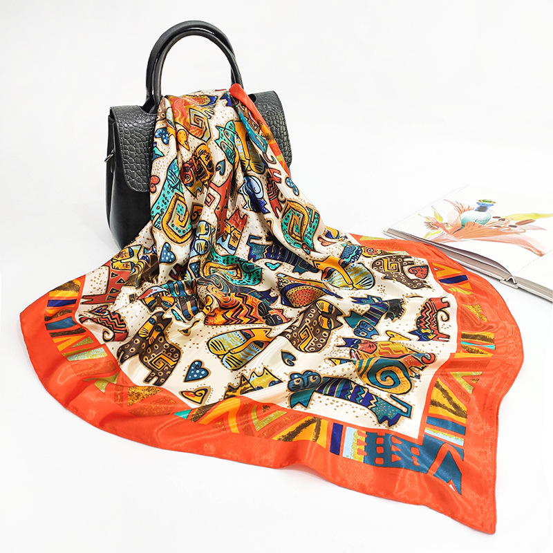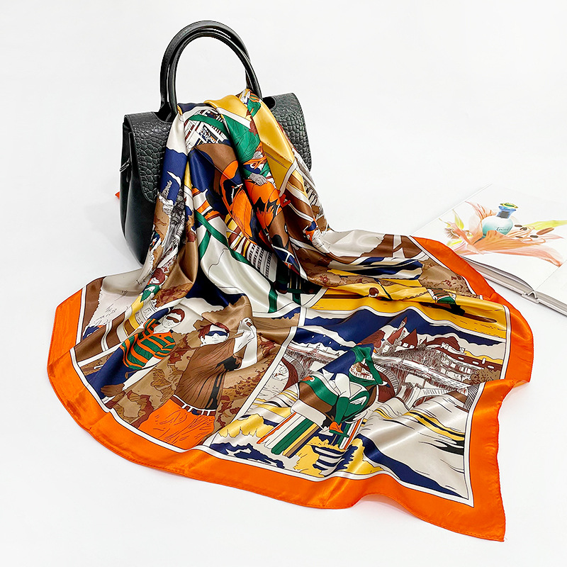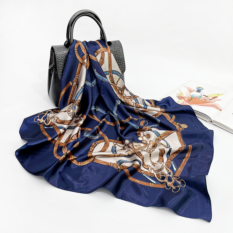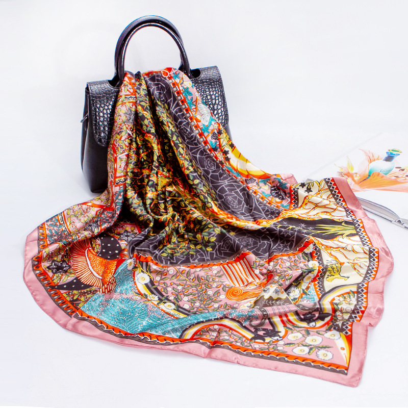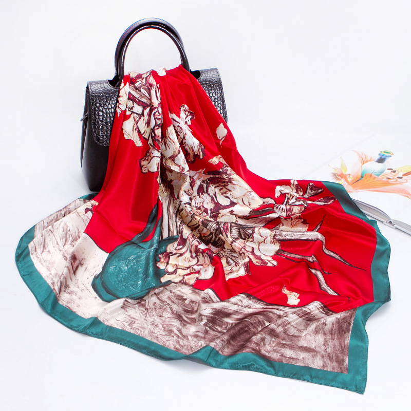 Silk Scarf Women's Spring/Summer Imitation Silk Printed Flight Attendant Scarf 90x90cm Large Square Scarf with Hand Gift Shawl