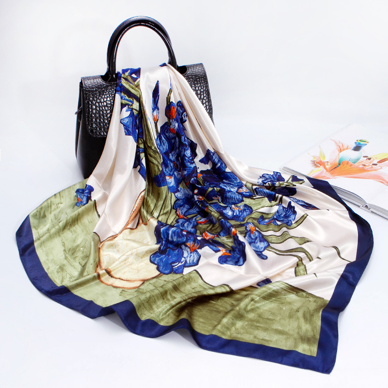 Silk Scarf Women's Spring/Summer Imitation Silk Printed Flight Attendant Scarf 90x90cm Large Square Scarf with Hand Gift_voghion.com