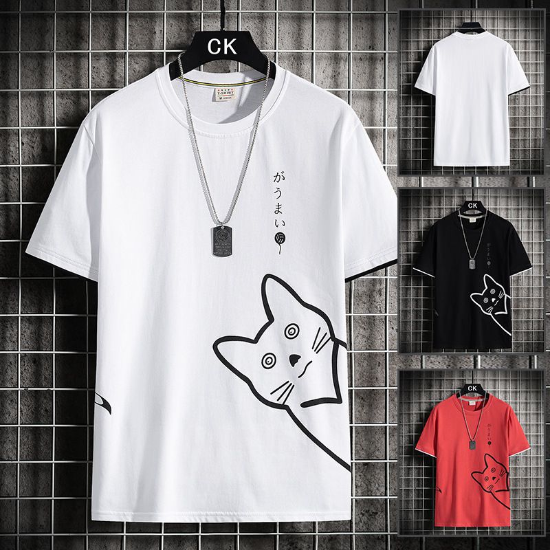 Student Loose Round Neck Sleeved Summer New Big Boy Pure Cotton Printed Short T-Shirt For Men