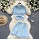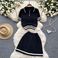 Summer Nei All Match Strickpullover Zwee-Stéck Kostüm Fir Fraen Retro Kontrastfaarf Kuerzärm Top Héich Taille Plisséiert Rock