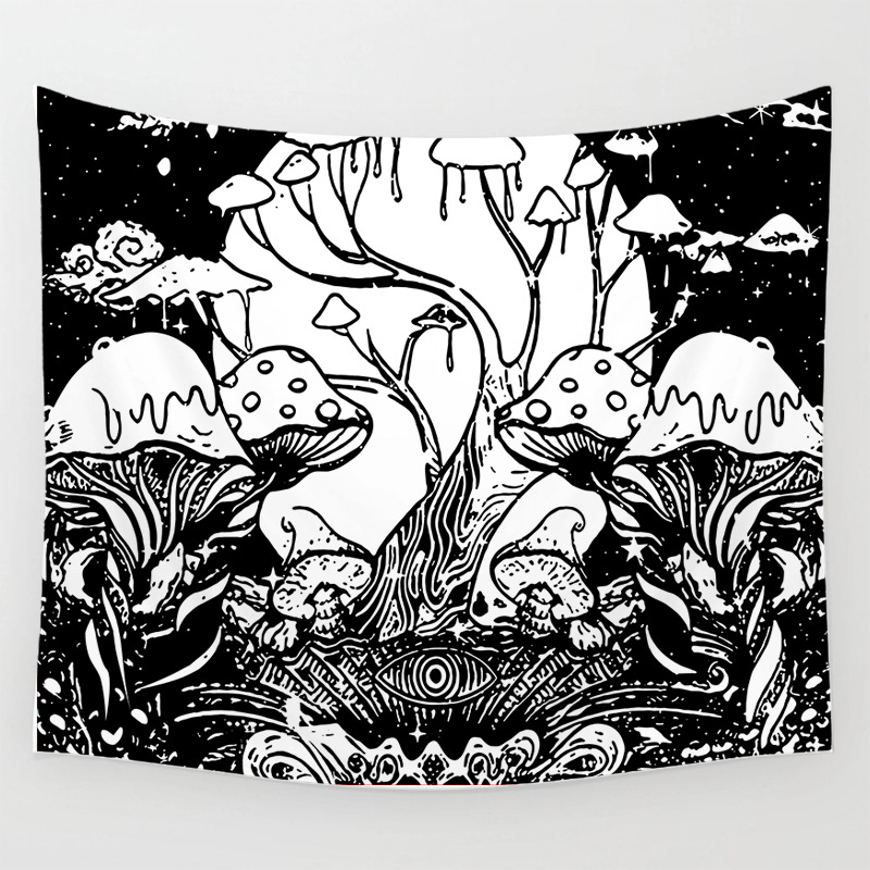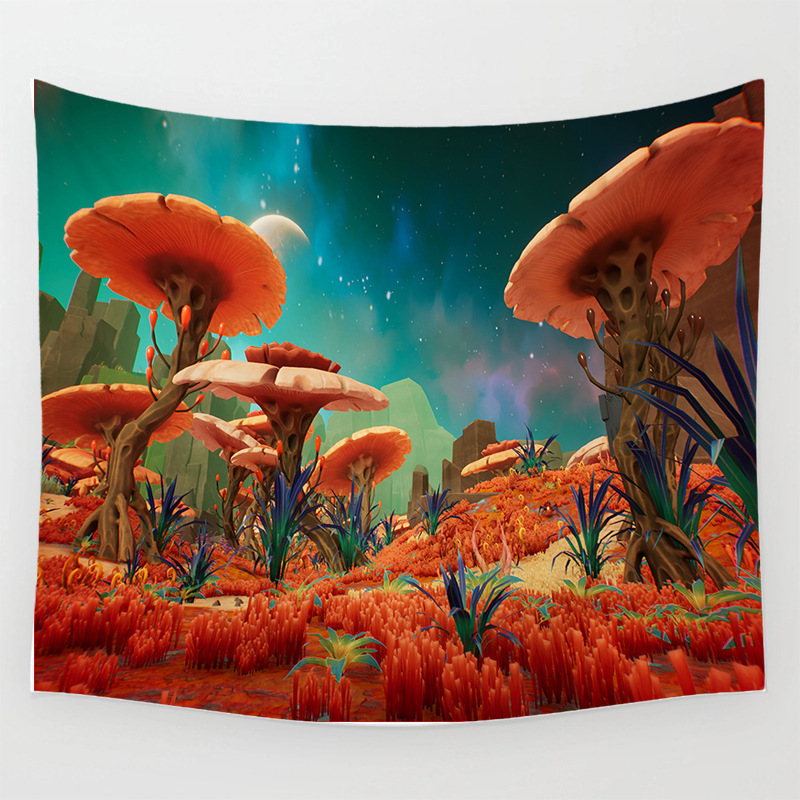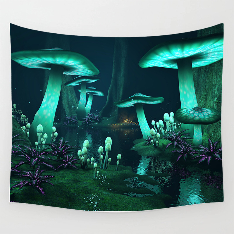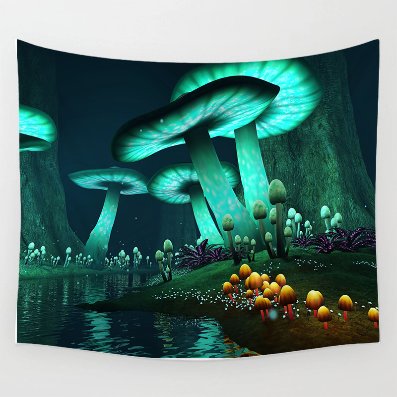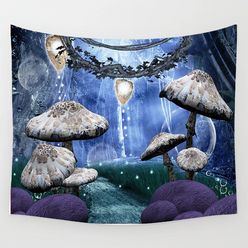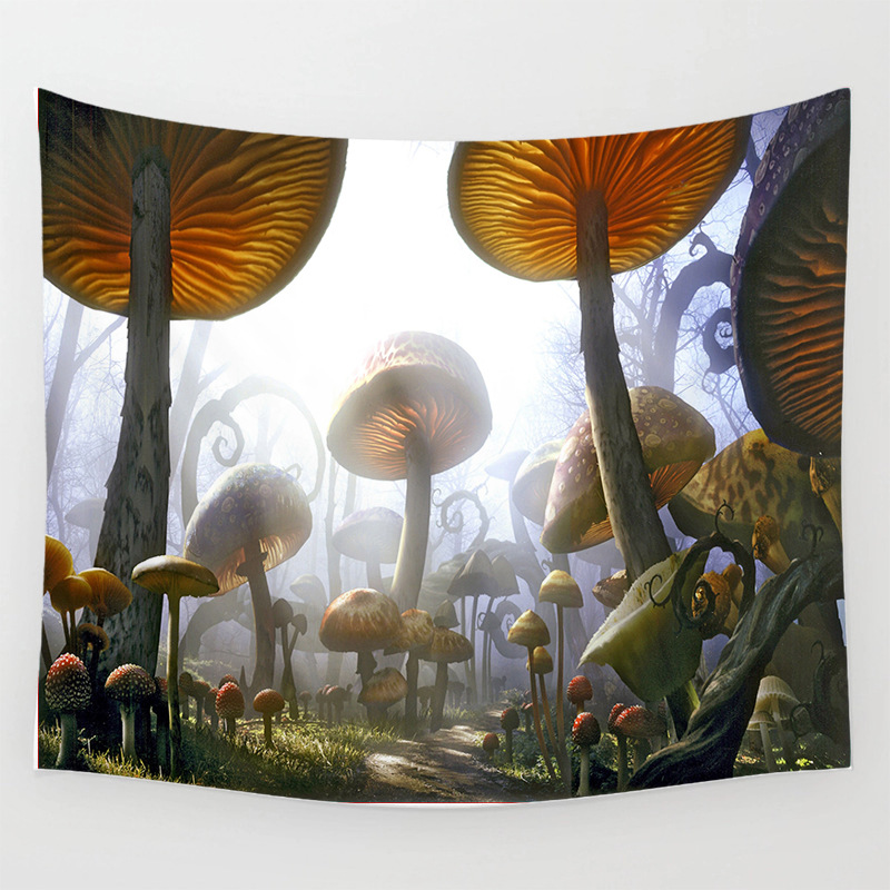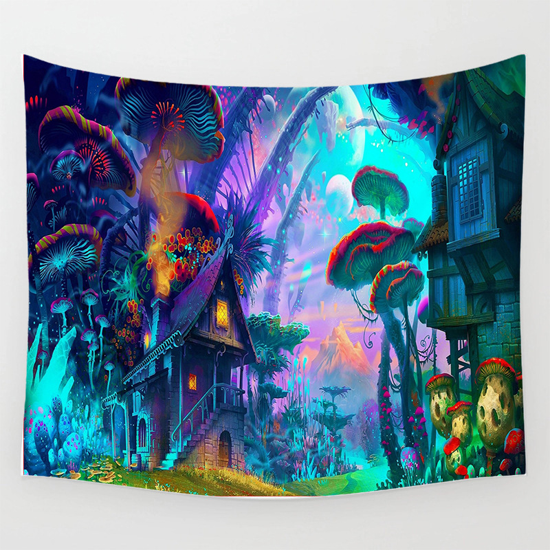 Super large background cloth, fantasy mushroom house, bedside bedroom, tapestry, wall cloth decoration, Nordic ins