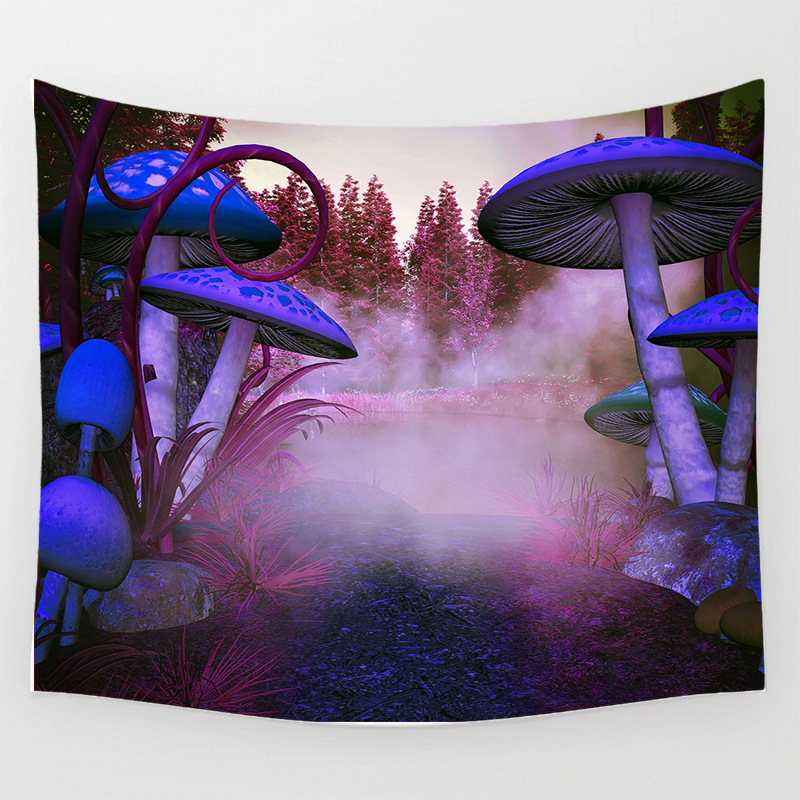 Super large background cloth, fantasy mushroom house, bedside bedroom, tapestry, wall cloth decoration, Nordic ins blocking