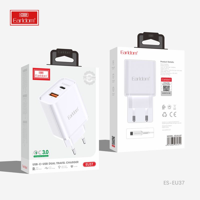 European Standard PD20W+QC3.0 Fast Charger CE Certified Dual Port A+C Compatible with Apple and Android Phones Charger