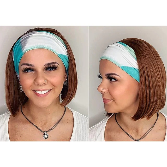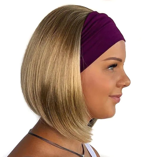 synthetic wig Women's Cover Ice Silk Band Golden Wave Head Short Hair High Temperature Matte Fiber