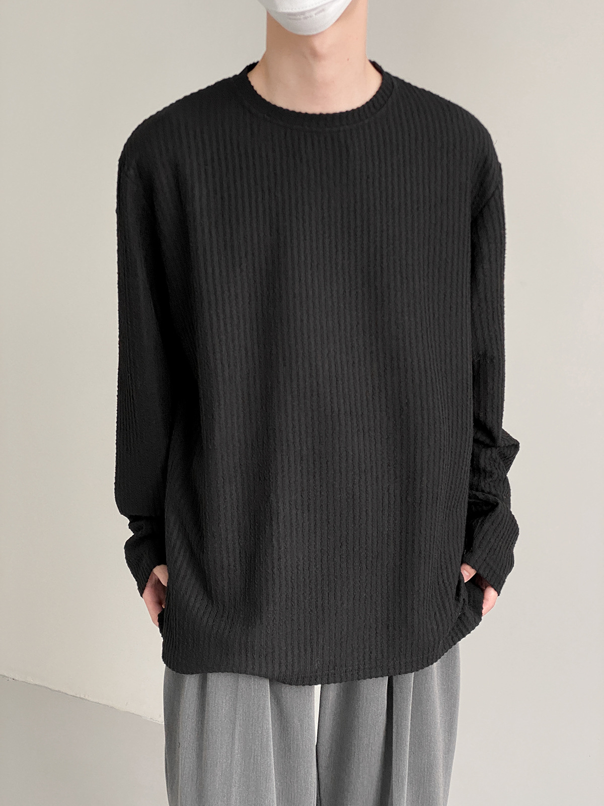 Texture Pit Stripe Long sleeved T-shirt for Men's Autumn Loose Casual Bottom Soft Sticky ins Round Neck Top Trendy Brand