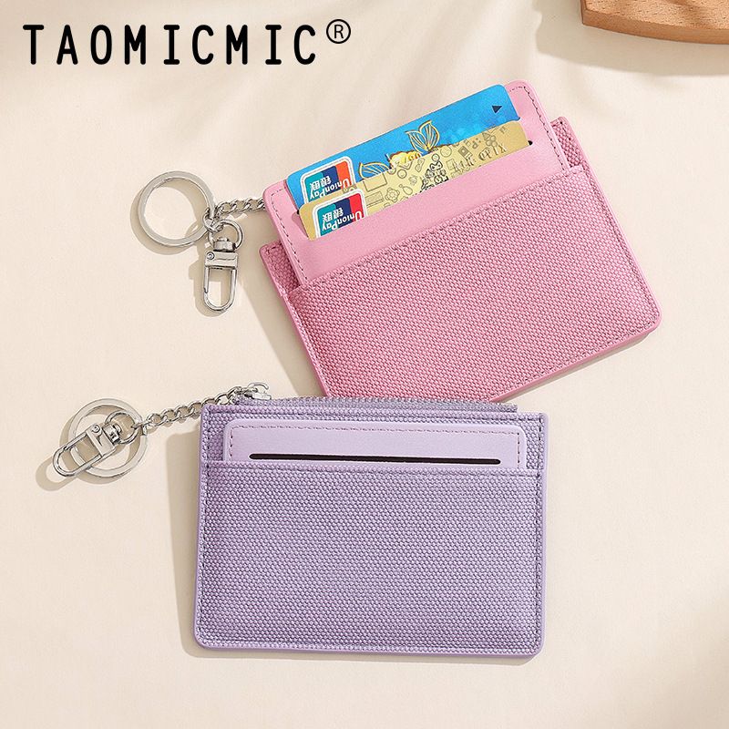Ultra-Thin Canvas Pattern Coin Purse PU Leather One-Word Pull Keychain ID Protection Case Multi-Card Slot Card Bag